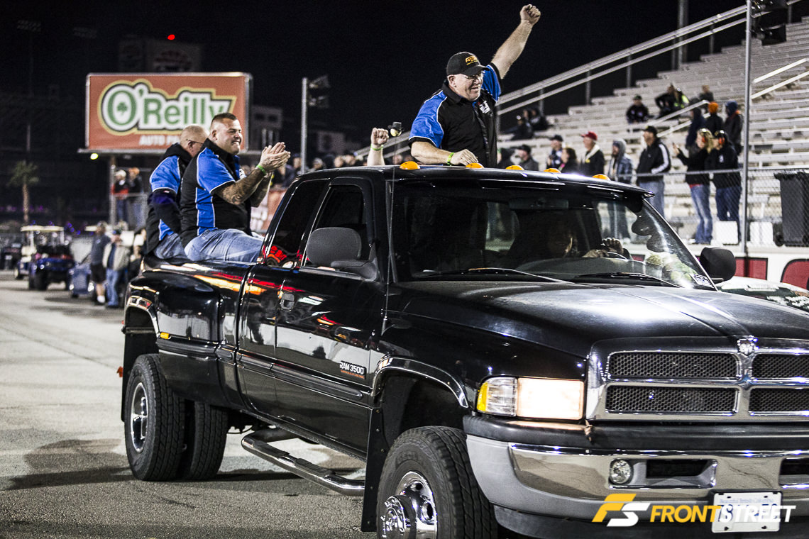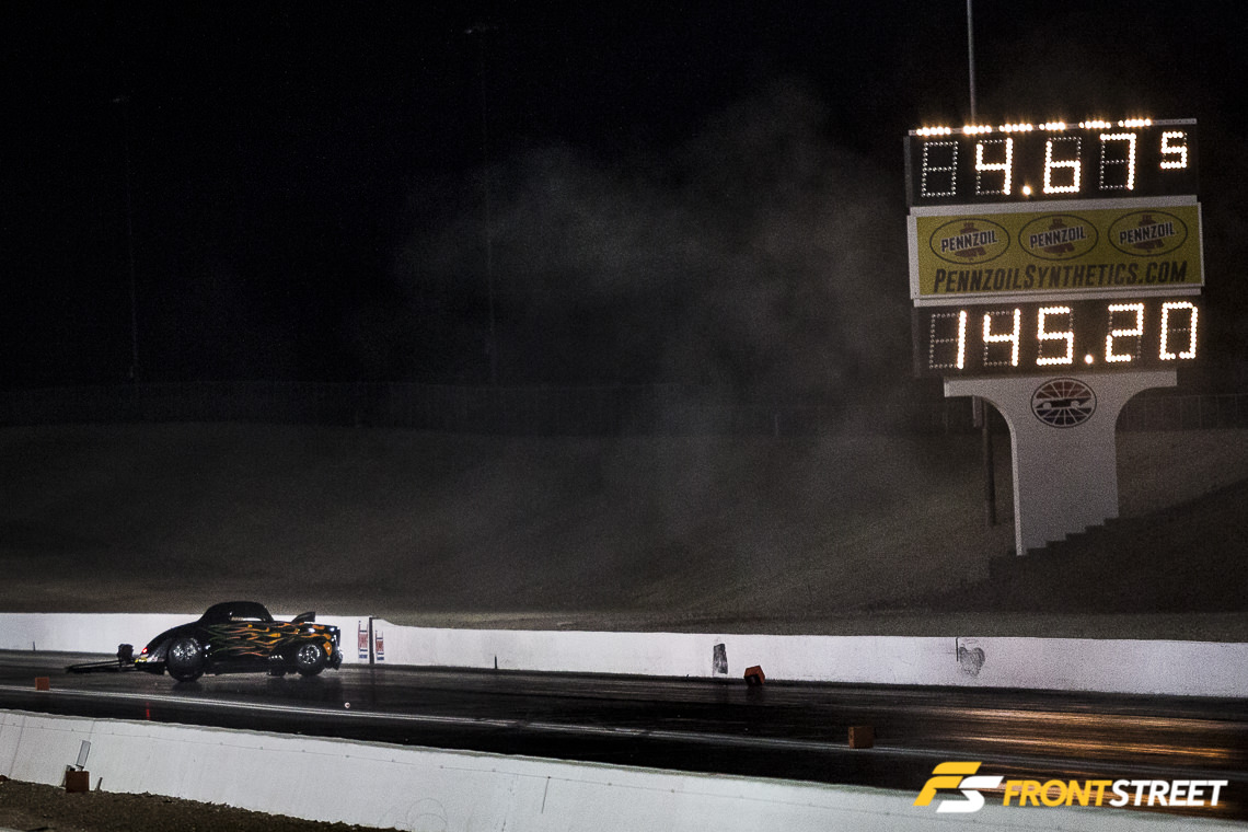 Sidnei Frigo made the long trip from Brazil to compete in his Pro Line Racing-maintained Pro Mod Corvette. The longtime racer’s efforts were rewarded, as he carded an insane 5.69 at 261 mph in the first round of eliminations on Saturday night. This feat was accomplished with a pair of 88mm turbochargers in an NHRA-legal Pro Mod, although it’s my understanding that there are no boost limits imposed at SCSN, where the NHRA limits competitors to 38 psi. Frigo went all the way to the final round of competition before getting out of shape and losing to California racer Mike Bowman.