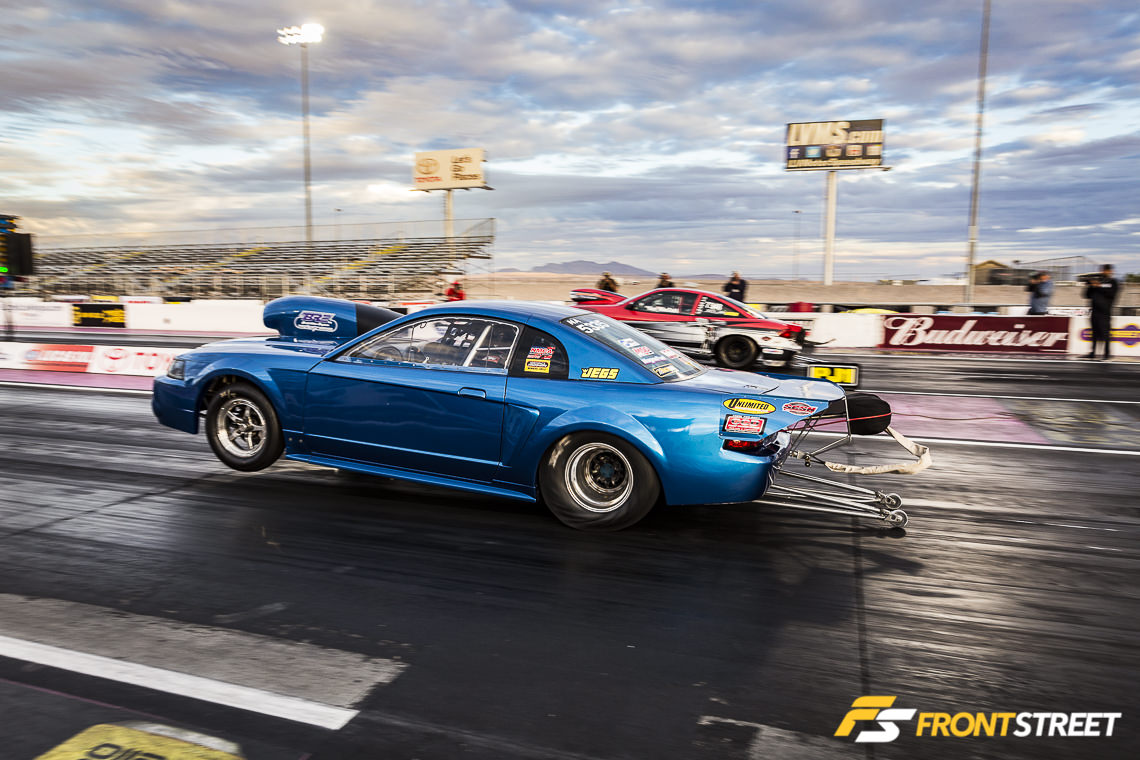 Meanwhile, Donnie Bowles made the best of his foray into Las Vegas, going to the fourth round in Open Comp – where he, too, fell to Spears. But in the Mustang Maddness class, Bowles made the best of his trip by qualifying 11th out of 33 cars. During the elimination sessions, he was like a machine, carding reaction times in the mid-.020-second range and just hundredths off his dial-in. By the time the final round rolled around, it was dark and cold, and the track was tight – but Bowles was loose and ready. Of course, it helped that opponent Don Bonahoom went -.001 red on the tree, but Bowles had figured out his Mustang’s combination during the 21 total passes he made while in Las Vegas and would have been tough to beat with a .008 reaction time and a 10.111 on a 10.10 dial-in for a 19-thousandths package.