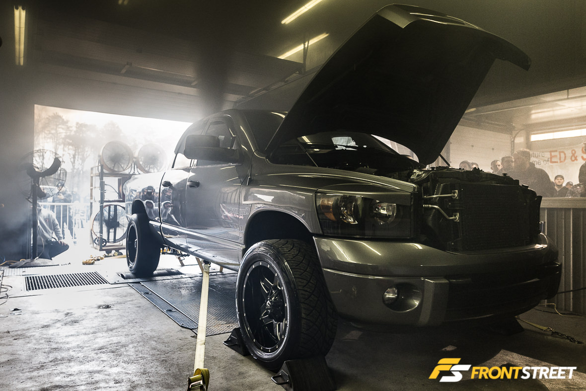 Andy Mulherin’s Cummins was next up. I always get a kick out of how diesel trucks are run on the dyno. They usually max out around 3,500 rpm, and just when I feel like they are going to make some serious steam, the pull is over and it’s time to shut it down. Mulherin’s Dodge maxed out the dyno at 889 horsepower, which turned out to be the lowest number of the day. It’s crazy to me to think that 889 horsepower was the smallest measurement from a group of eight vehicles; this shows the caliber of vehicles which showed up to Dyno Wars IV.