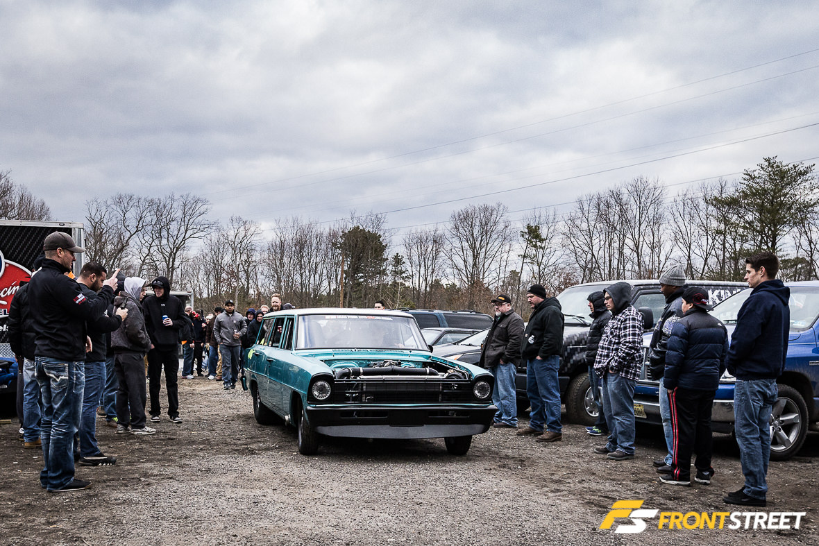 Up until this point, every vehicle in competition had been either a small-block or a diesel, and it was fitting, as Fonse saved the best for last with the big guns scheduled up next. Some of you reading this might recognize this next car, as it’s been all over the internet over the last couple of years. Frank Saponaro’s twin-turbo big-block Chevrolet Nova wagon has competed in Hot Rod Magazine’s Drag Week event and is one of the most noticeable and unique vehicles around. In fact, you’ll be able to see it in all its glory right here on Front Street later this spring, as we made plans to tell the story of its creation with a full photoshoot.