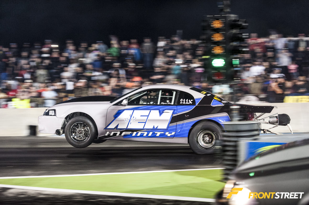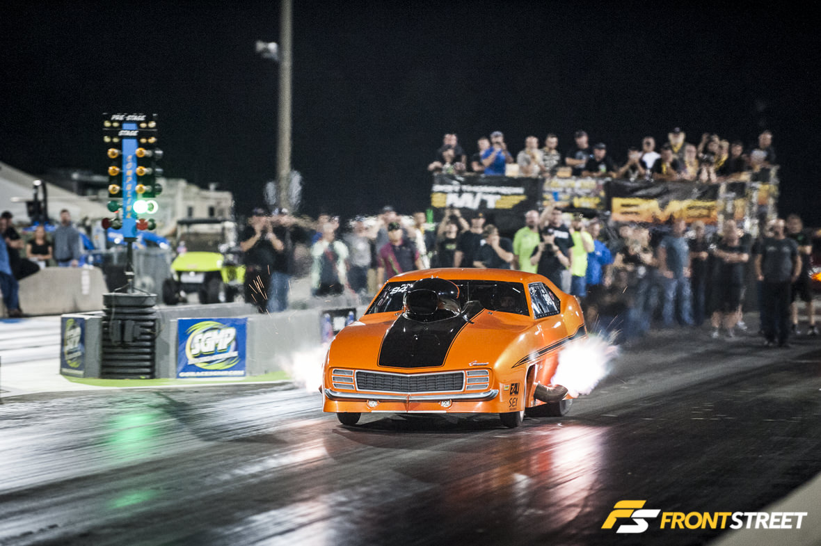 Tony Alm took most of last year off after experiencing a number of transmission issues that he fought through, which were finally corrected by Jason Gatlin of ATF Speed. But a decision to have Tim Eichhorn of MPR Engines build him a 400 cubic-inch engine has paid off in spades. He switched to a setup to use alcohol fueling and immediately launched the car into the 4.80s in Ultra Street trim, which put him into the winner’s circle at the recent US Nationals. Lights Out 8, in comparison to the last year, was something of a cakewalk for the Florida resident.