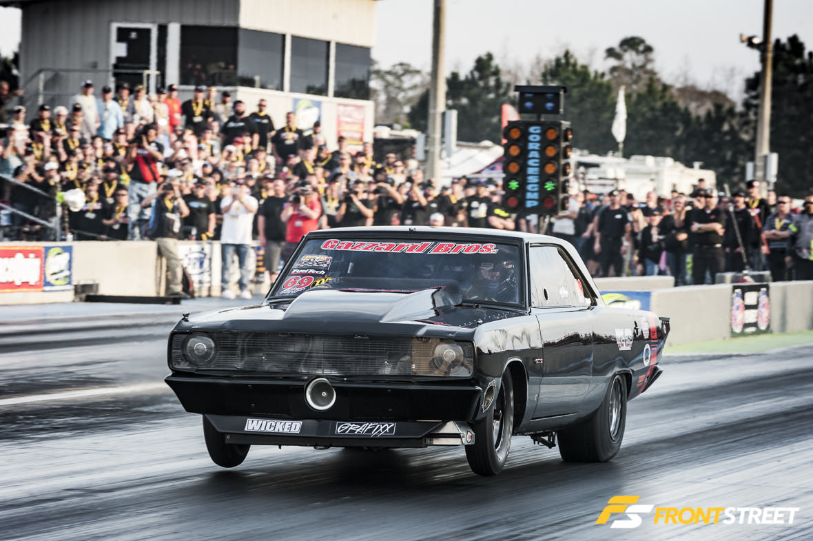 One of the biggest stories of the weekend – and possibly of the year – is that of racer Lyle Barnett, who made his triumphant return to South Georgia Motorsports Park behind the wheel of Jason Digby’s “Tooth Jerker” ’69 Dodge Dart. Barnett, who was severely burned in a fire at this very track at the No Mercy VI event in 2015, spent months in the hospital and countless hours in physical therapy. He spent Lights Out 8 demolishing the competition in the Leaf Spring class, taking home the class title in an incredibly-emotional win.