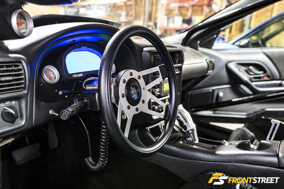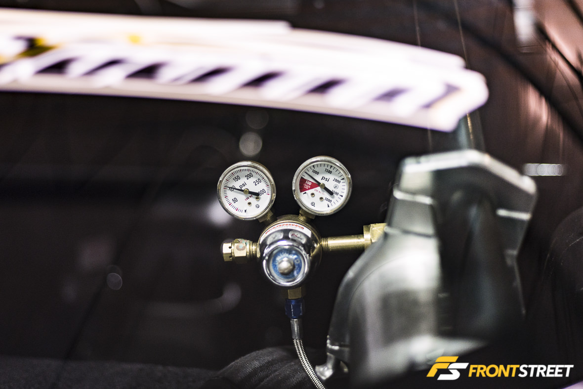 The Wolfe Racecraft chromoly roll cage was installed by Serrano’s longtime frenemy, Jace Nester. The two have a healthy love-hate relationship which was on display on the day I shot these photos; Nester’s twin-turbo LS-transplanted Mustang can be seen in the below photo, and will be featured here on Front Street soon in a feature of its own. Listening to them talk smack at one another for a couple of hours on a Sunday morning was hilarious, and the rivalry between them drives each to be a better racer.