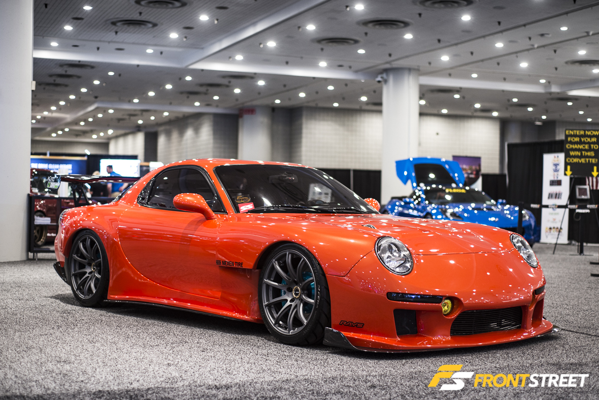 Finishing off my day was a trip to the lower floor of the event, where industry-leading wheel manufacturer RAYS Wheels utilized valuable floor space to showcase their new wheel models, both individually and also featured on a select group of worthy vehicles. This year, that assortment included an RE-Amemiya Mazda RX7 with Gram Lights 57Transcend wheels, an ND5RC MX-5 Miata with Volk Racing TE37V wheels, a Subaru STi with Gram Lights 57CR wheels, and a Mitsubishi Lancer Evolution, also with Volk Racing TE37V wheels.