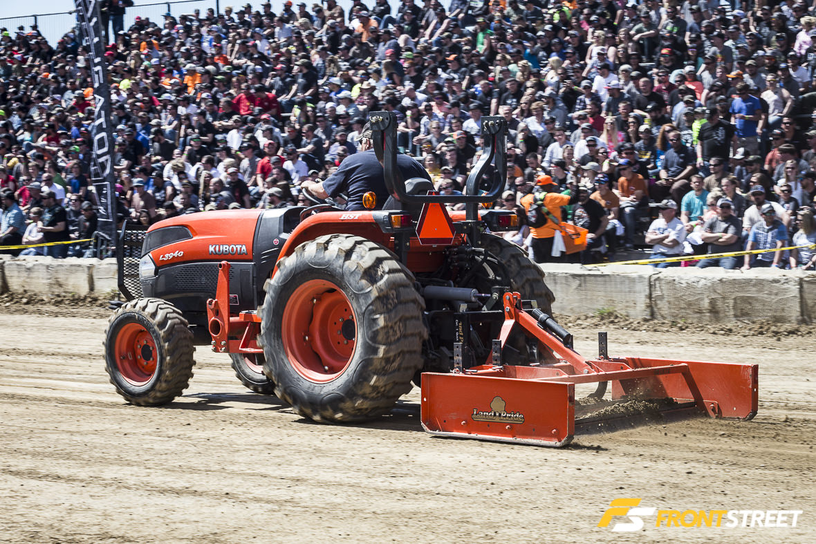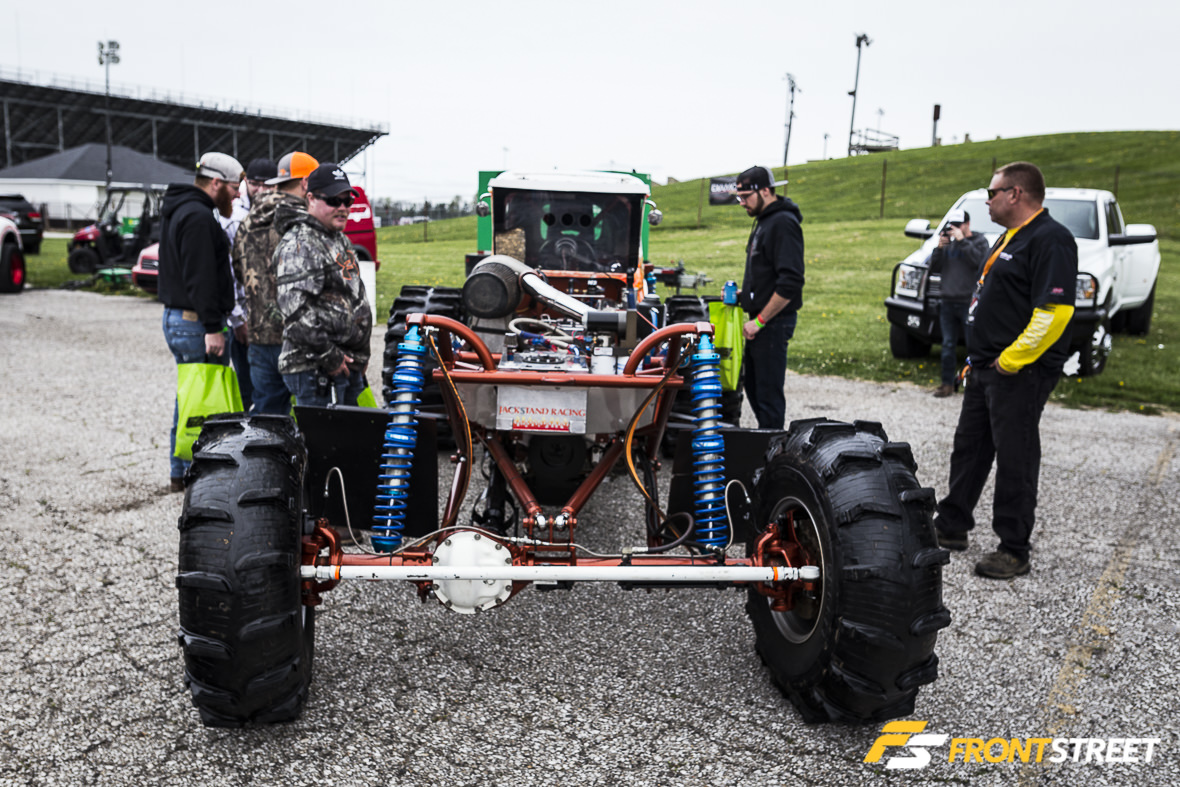Unfortunately for Farmtruck, something on the engine expired on the dragstrip right at the mile-per-hour clocks, rendering the truck’s strip run its one-and-only entry into that portion of the event. The team subsequently repaired the truck and outfitted it with monster meats for the sled pull portion of the Ultimate Callout Challenge.