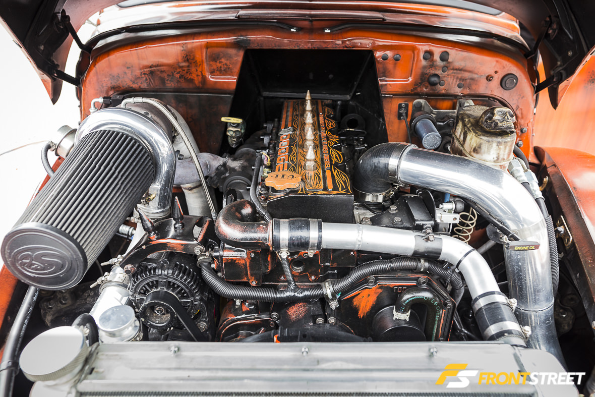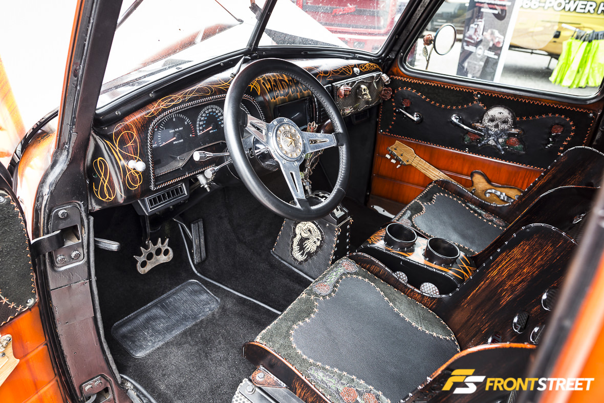 It was totally unexpected to see a pair of side-by-side turbocharged 12V Cummins engines under the hood of this 1970 Dodge Sweptline. I did a double-take, as did many of the attendees.