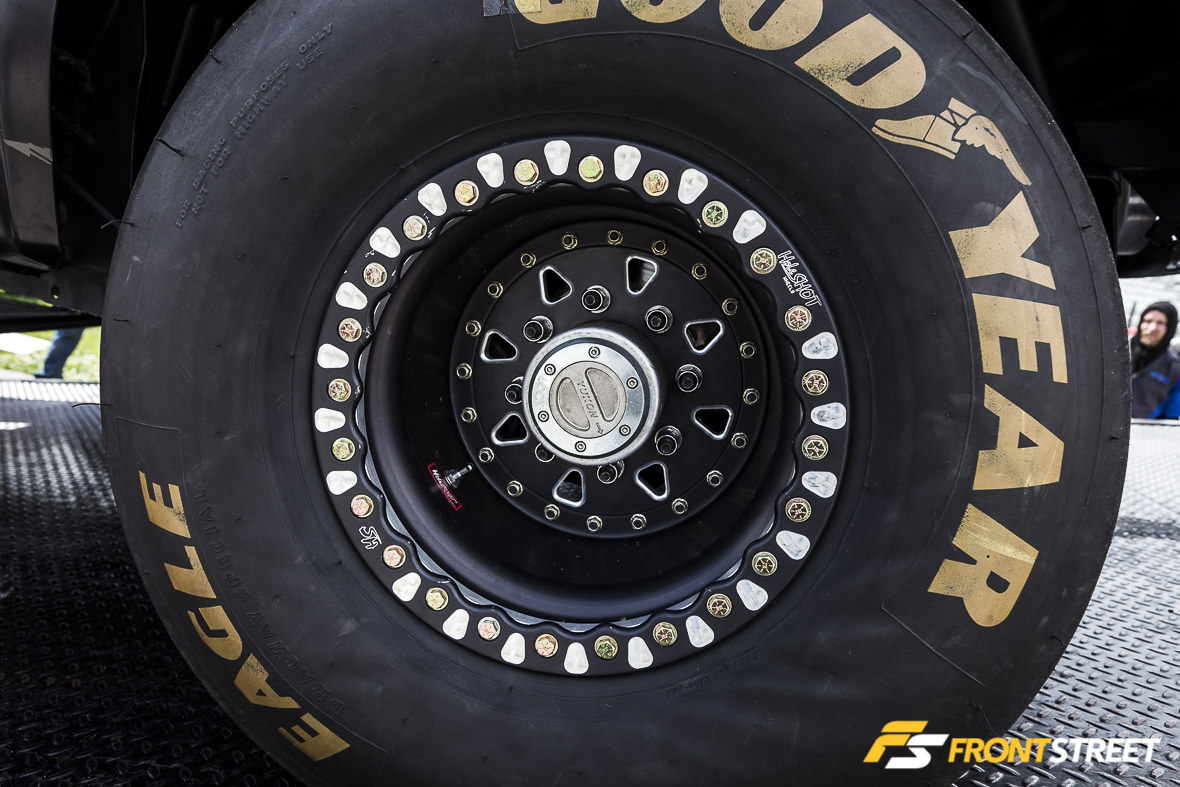 Lyn Miller (foreground) told me the team made over 3,000 horsepower on the engine dyno in testing, but the way the chassis dyno loads the engine doesn’t allow it to make the same type of monstrous horsepower numbers they saw at that time. Since the team was going for broke (literally!) the UCC staff forced everyone to clear out of the immediate area while the Firepunk truck was on the dyno. It’s worth noting that Miller was the only entrant to wear his helmet and full race suit on the dyno, a testament to the team’s uncertainty about how the engine would perform – or whether it would even last long enough to complete the pulls. Here Lyn anxiously awaits the results of the team’s hard work.