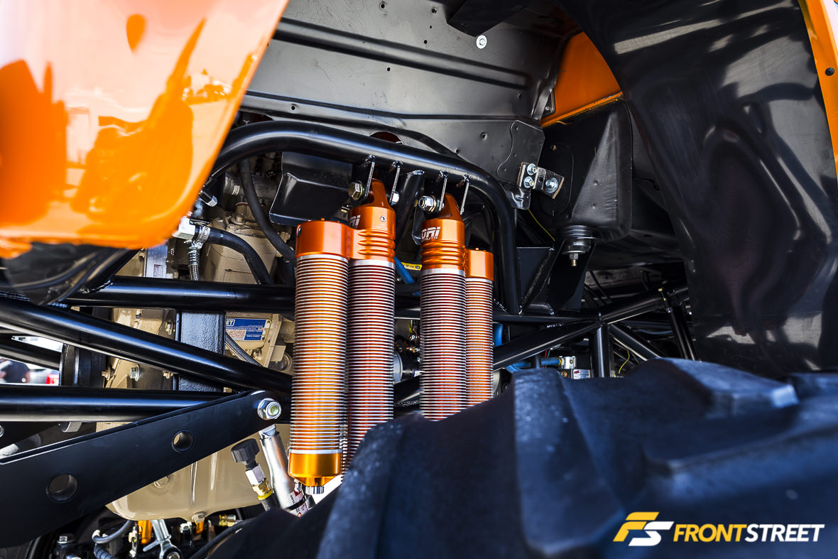 Baca’s truck features a trio of Holset turbochargers atop the 6.7-liter deck-plate/sleeved Shredder Cummins-based engine from Industrial Injection. Baca, the lead engine builder there, had his work cut out for him to keep up with the consistency of Miller’s Firepunk entry.