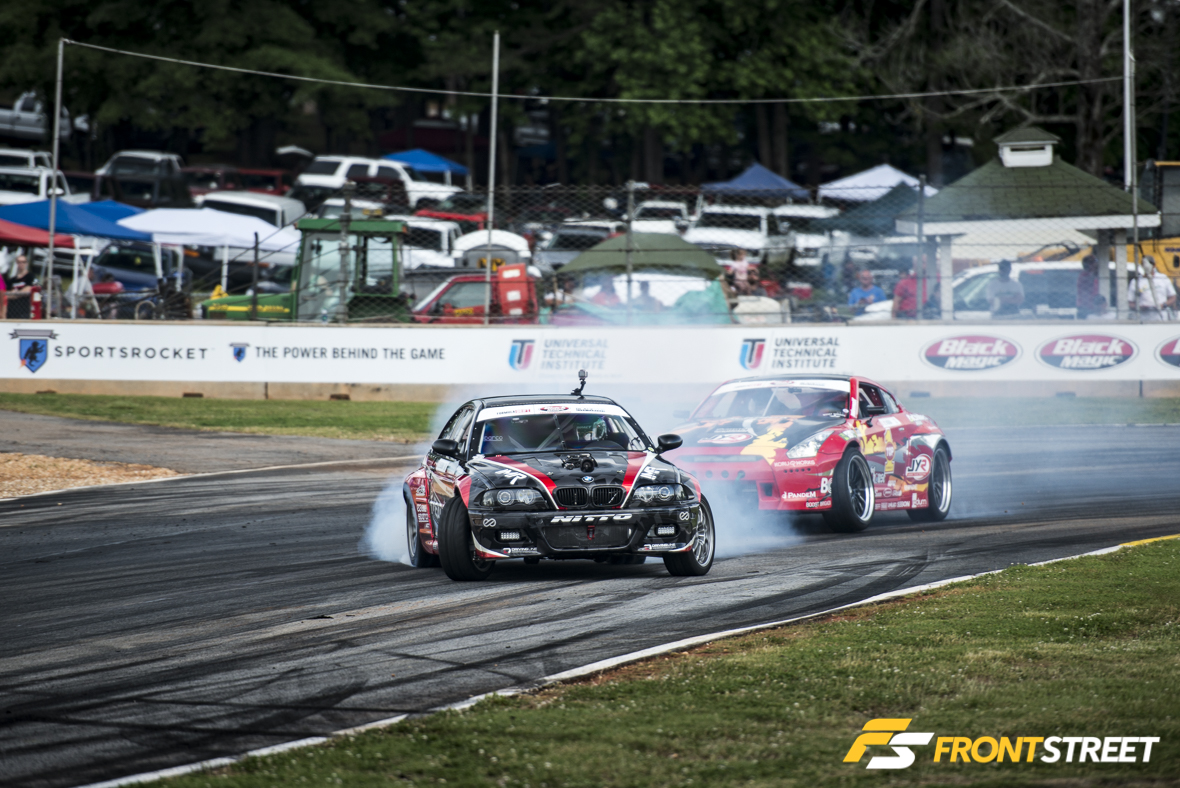 The weekend of the Drift Atlanta event is packed full of motorsport excitement as it combines Global Time Attack battling against the clock, Trans Am wheel-to-wheel racing, and Formula Drift Pro and Pro2 competition all squeezed onto the famed turns of the Road Atlanta racetrack over two days. This creates a truncated schedule for all the series involved—even with perfect weather. When thunderstorms were predicted in the forecast for Friday afternoon, each series adhered to their schedule accordingly in the morning, and Formula Drift made the decision to abandon their allotted two hours of practice in favor of bumping their Pro qualifying session to an earlier timeslot. With only a Thursday afternoon practice session to test, many competitors still needed to dial their cars in during qualifying.