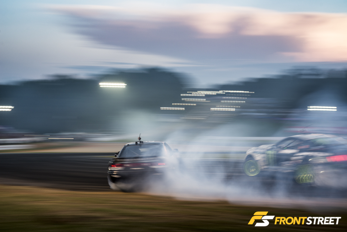 As the storm approached nearer, the qualifying session for the Pro championship ended with minutes to spare before the projected thunderstorm made its way above of the racetrack. True to form, my curse brought the rain again. Luckily, it didn’t interfere with Formula Drift’s Pro Championship thanks to some clever schedule rearranging by FD’s staff. Pro2 was not as lucky, as fans had to wait out the lightning before their eliminations could begin.