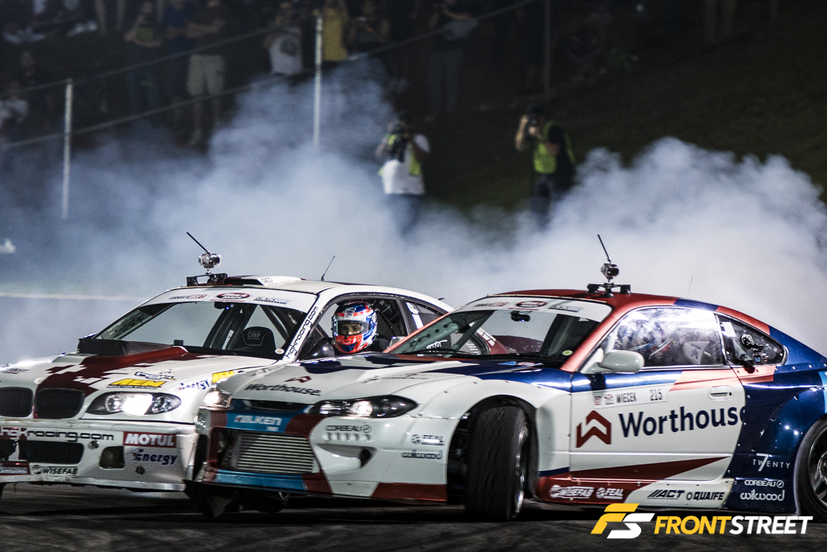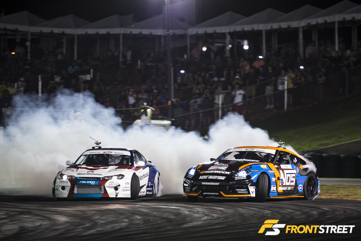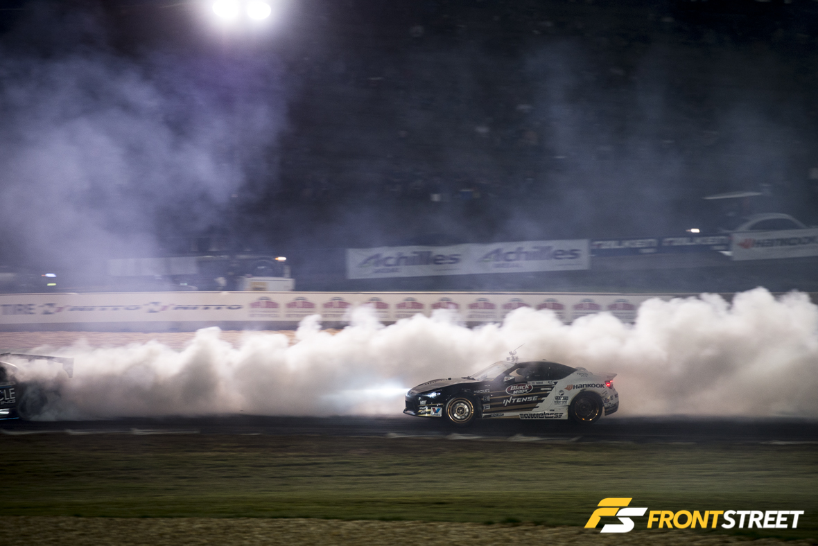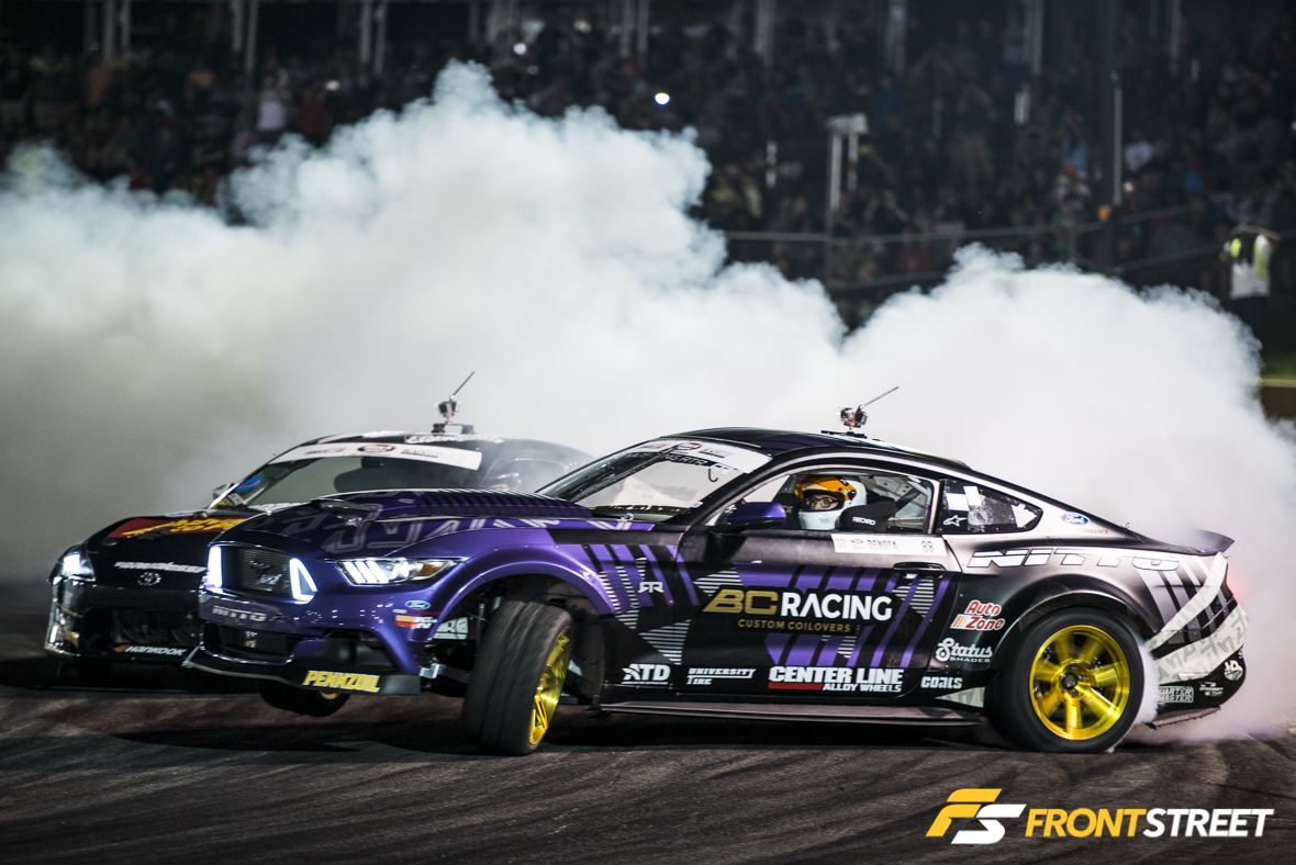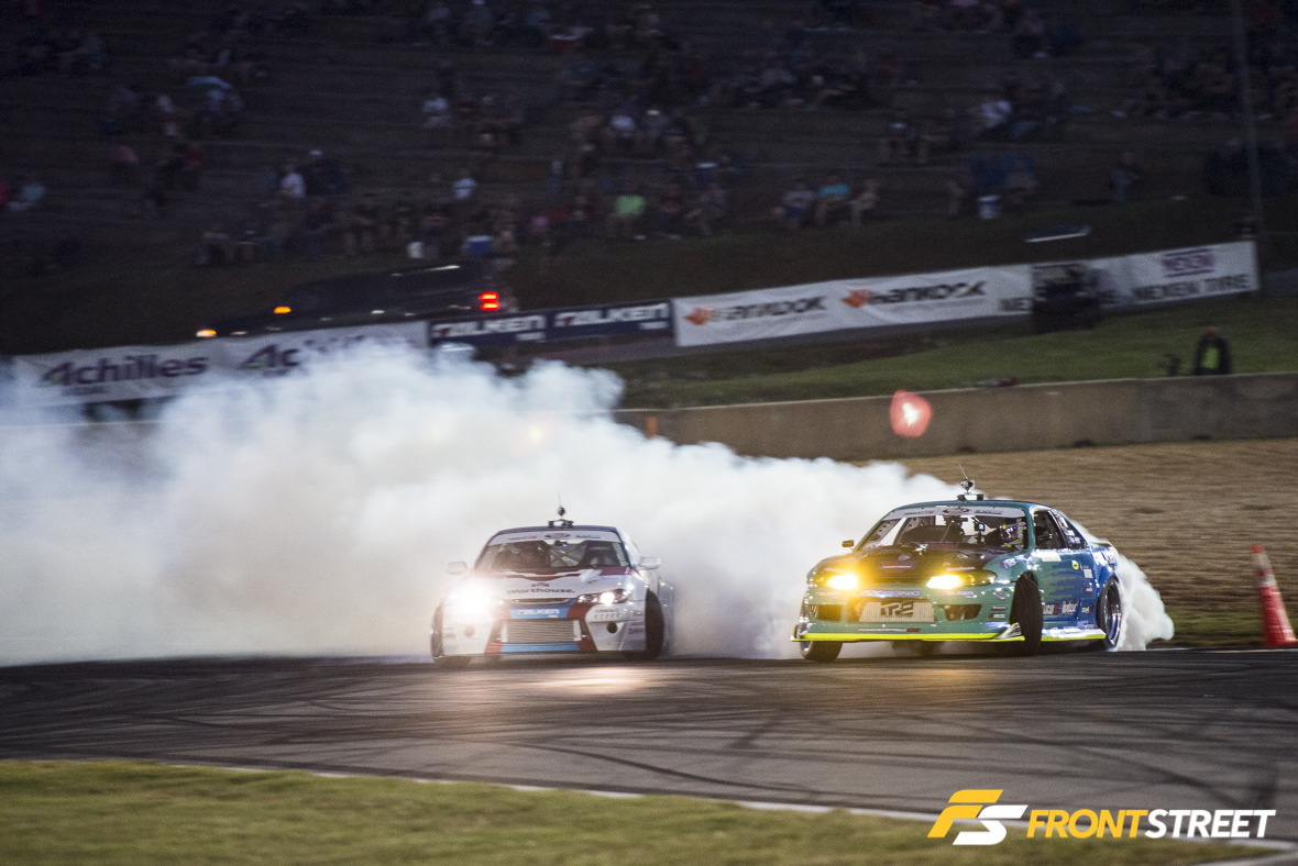 One of the highlights during Top 32 came from Odi Bakchis in his Falken Tire/Feal Suspension Nissan 240SX and Chris Forsberg in his NOS Energy Drink Nissan 370Z. The two are known for their aggressive driving styles, and neither gave up an inch of track for the other. In the end, it would be the three-time Formula Drift World Champion Forsberg, who would advance to Top 16.