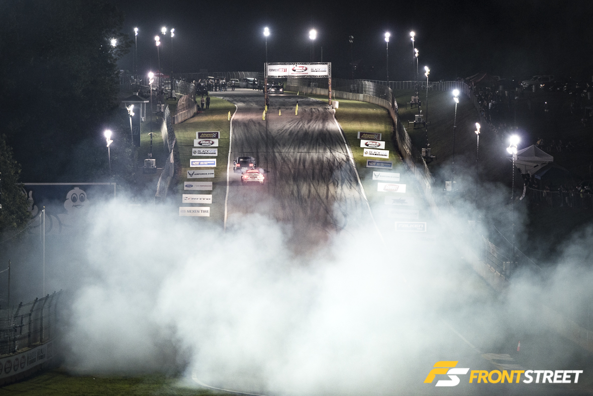 Over the past couple years, it has been mentioned on several occasions that I, Kyle Crawford, am cursed. Not cursed with anything detrimental: my life is not in jeopardy, nor does any sort of demon inhabit me, but I do seem to induce inclement weather no matter where I go. If you look back through my past event coverage you’ll notice that many events are either photographed in the rain, or there are ominous clouds looming in the background. In fact, even on my honeymoon in St. Thomas it rained for three days straight, which the locals told me almost never happens. So when I checked the forecast for Braselton, Georgia, just prior to this year’s annual showcase of tire smoke and motorsport at the Road Atlanta stop of Formula Drift, I feared for the worst. Thunderstorms.