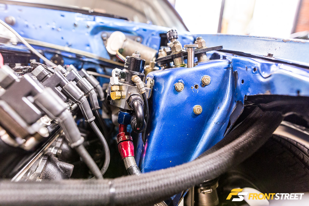 Prior to running the car at the track, he enlisted Troy Baum of RaceWires to help sort out the electrical system and ensure the car would run in top condition. By being smart about where he’s invested his money, he was able to cut corners in certain places—like by using flipped stock truck exhaust manifolds rather than a $2,000 set of custom turbo headers—and have professionals lend their expertise where it would make the most difference in the car’s performance.