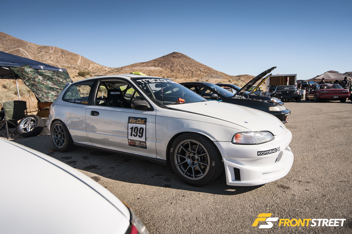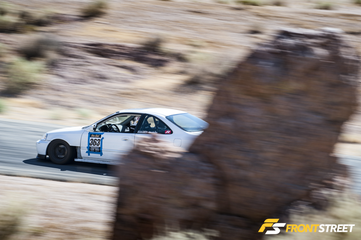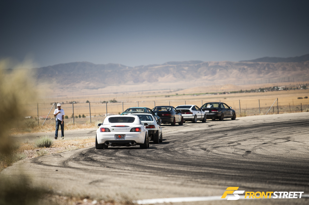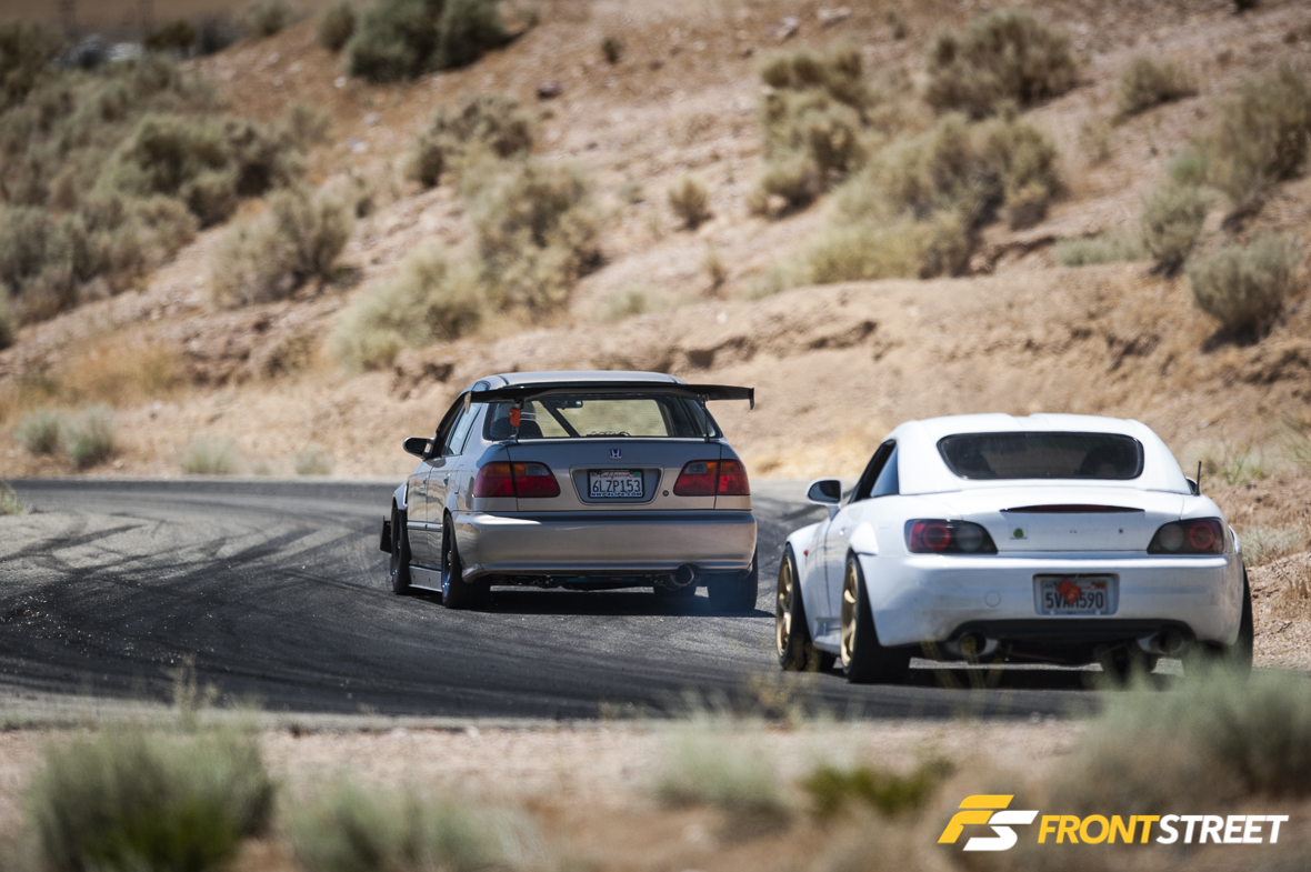 That’s when the concept of the Touge Stage was born. Let’s not kid ourselves: driving spiritedly through twisty, narrow canyon roads (called “touge” in Japan) is something SoCal enthusiasts love to do in past-time, but it’s not without its dangers. Think of the VTEC Club Touge Stage as something similar to Best Motoring/Hot Version “Touge Battles,” where Japanese drivers like Keiichi Tsuchiya or Max Orido blast through sectioned-off roads in Japan, only with VTEC Club competitors on SoCal’s most touge-like racetrack: Willow Springs’ Horse Thief Mile (HTM).