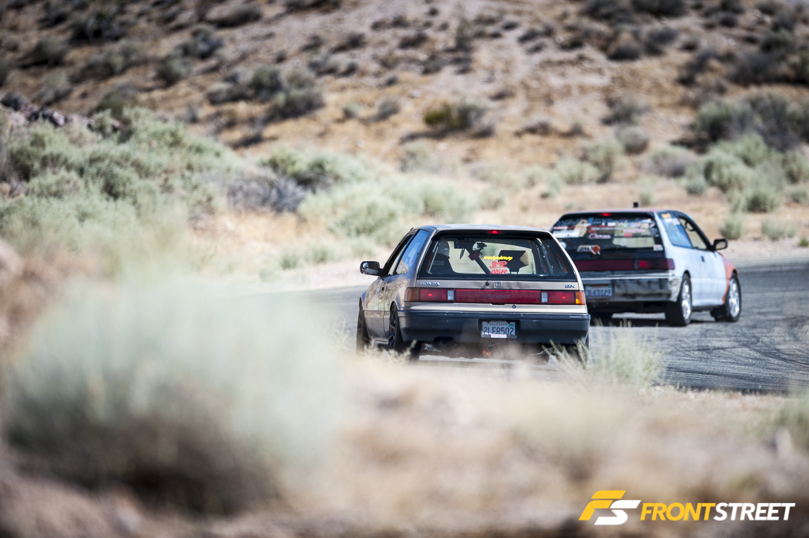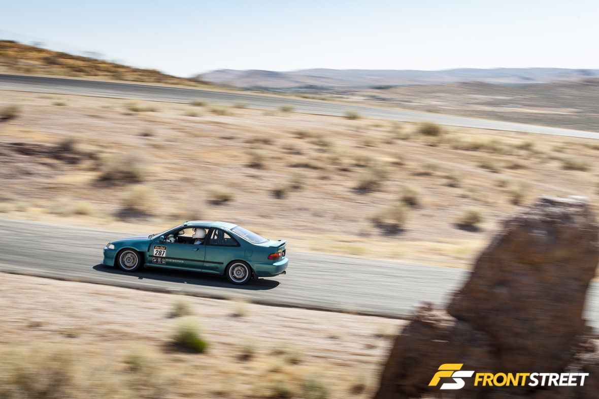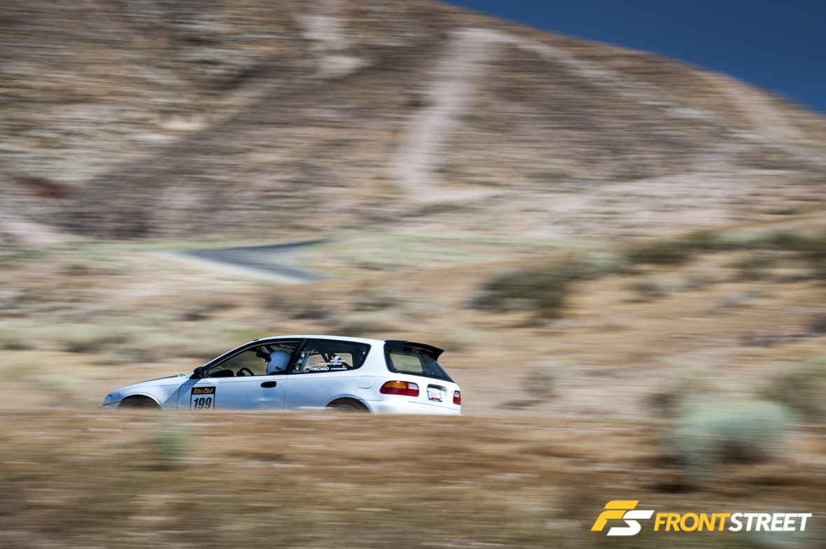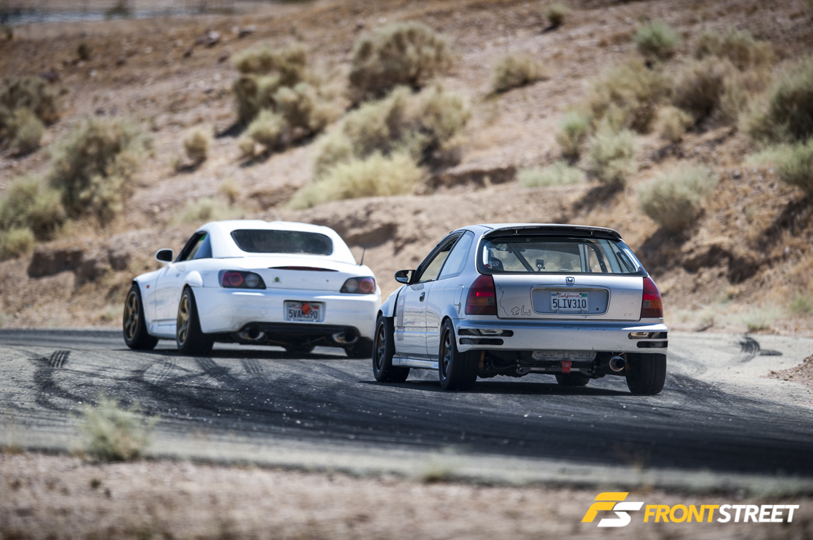 That’s when the concept of the Touge Stage was born. Let’s not kid ourselves: driving spiritedly through twisty, narrow canyon roads (called “touge” in Japan) is something SoCal enthusiasts love to do in past-time, but it’s not without its dangers. Think of the VTEC Club Touge Stage as something similar to Best Motoring/Hot Version “Touge Battles,” where Japanese drivers like Keiichi Tsuchiya or Max Orido blast through sectioned-off roads in Japan, only with VTEC Club competitors on SoCal’s most touge-like racetrack: Willow Springs’ Horse Thief Mile (HTM).