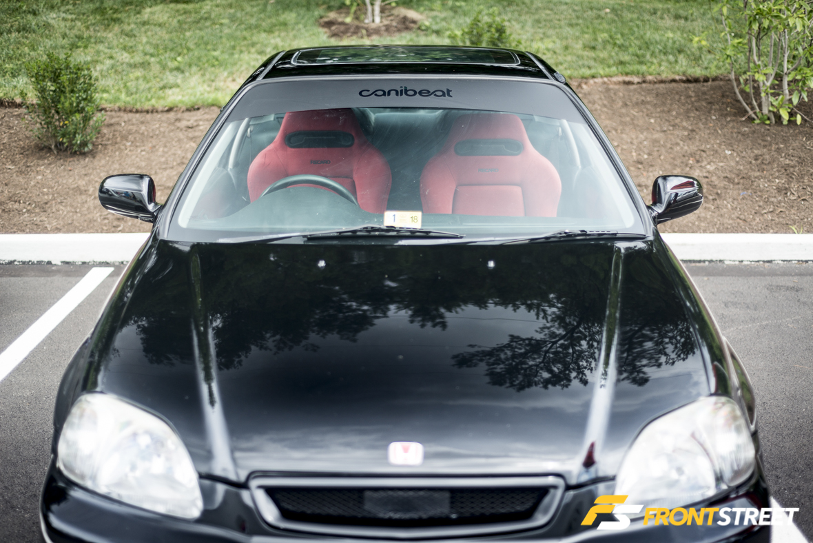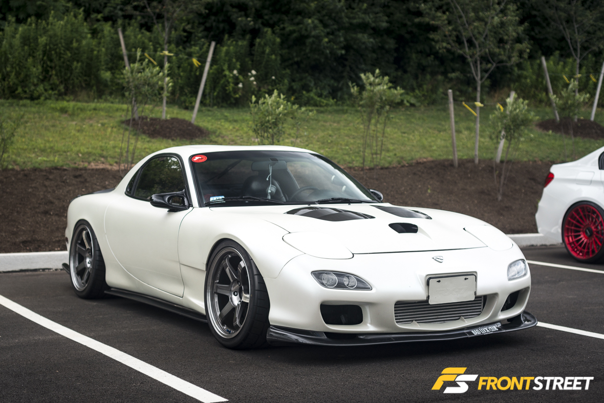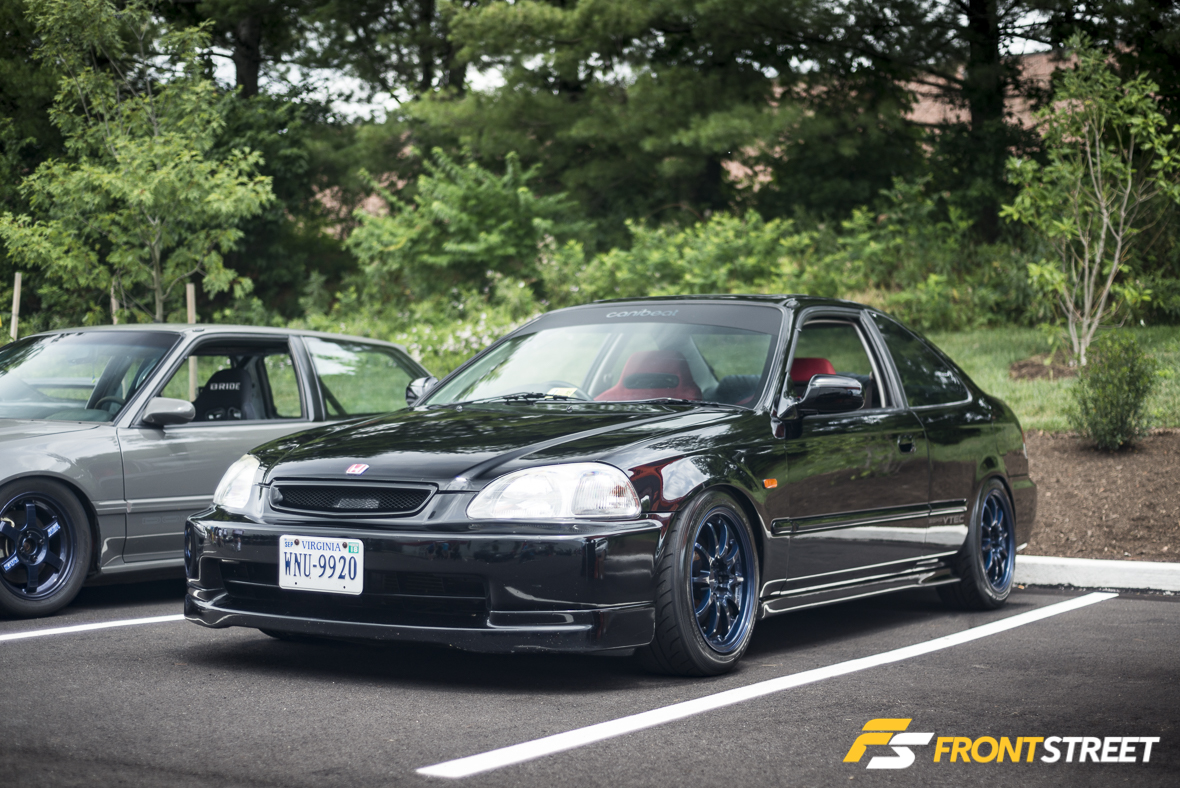 Cristian Loza, co-founder of the meet’s co-host Canibeat, showed his new Acura TSX with a complete Mugen aero kit affixed to the various panels of the car. Using airbag suspension, the body is lowered just slightly overtop of bronze Volk Racing TE37 wheels for the perfect aggressive look and stance.