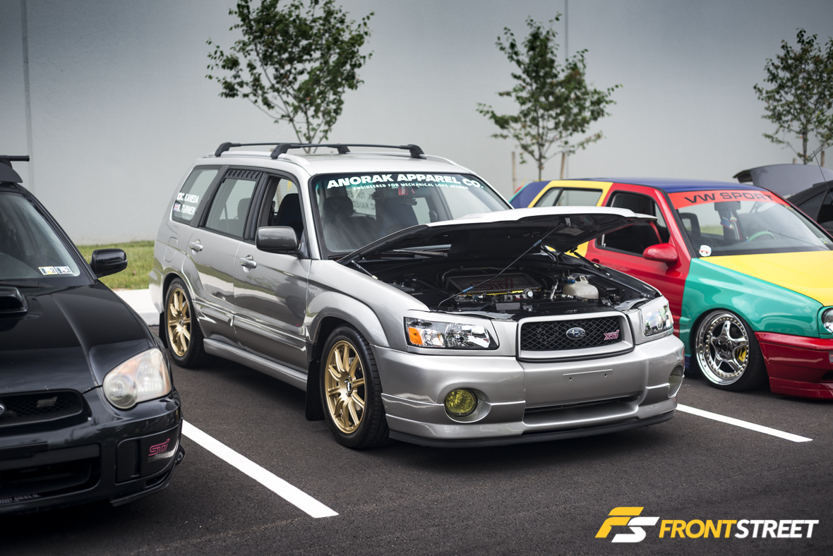 Pictured here is a group of modified cars, which would be hard to find together anywhere else: A classic hotrod, two Hondas, a track-ready E90 BMW M3, a new Mazda MX-5 Miata, a new lifted Toyota Tacoma, a new Nissan Maxima, and a 20th Anniversary Edition Volkswagen GTI. All of these were modified tastefully, and all could be found within feet of each other. If variety were a goal for this event, I’d label this a success.