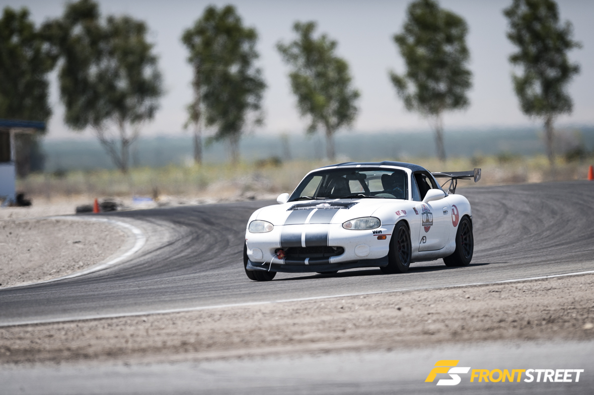 Another cross-classification phenom was present from Evan Tran and his No. 290 NA6 Miata, powered by a J30A Honda V-6. The car is admittedly still in development, but ran reliably in the triple-digit heat all day long, logging a respectable best time of 2:15.941 in Group A competition.
