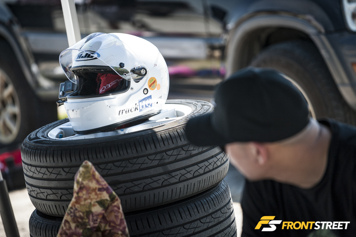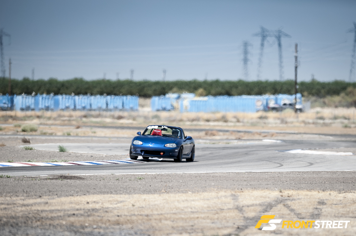 VTEC club drivers and followers will know Nik Romano and his No. 127 F20C (S2000 engine)-powered NA6 Mazda Miata for regularly cleaning up Group A competition in the events they enter. Nik competed in VTEC Club this time around, though technically he’s eligible for competition in either series. What’s more, he’s originally from NorCal even though he drove with his SoCal buds, and if that’s not already interesting enough, he nabbed third in A2 competition this time around with a blistering 1:58.633 in 100º+ heat … with no clutch. A throwout bearing failure early on meant Nik and his crew had to push-start their Miata and he had to shift by rev-matching the entire day. Crazy.