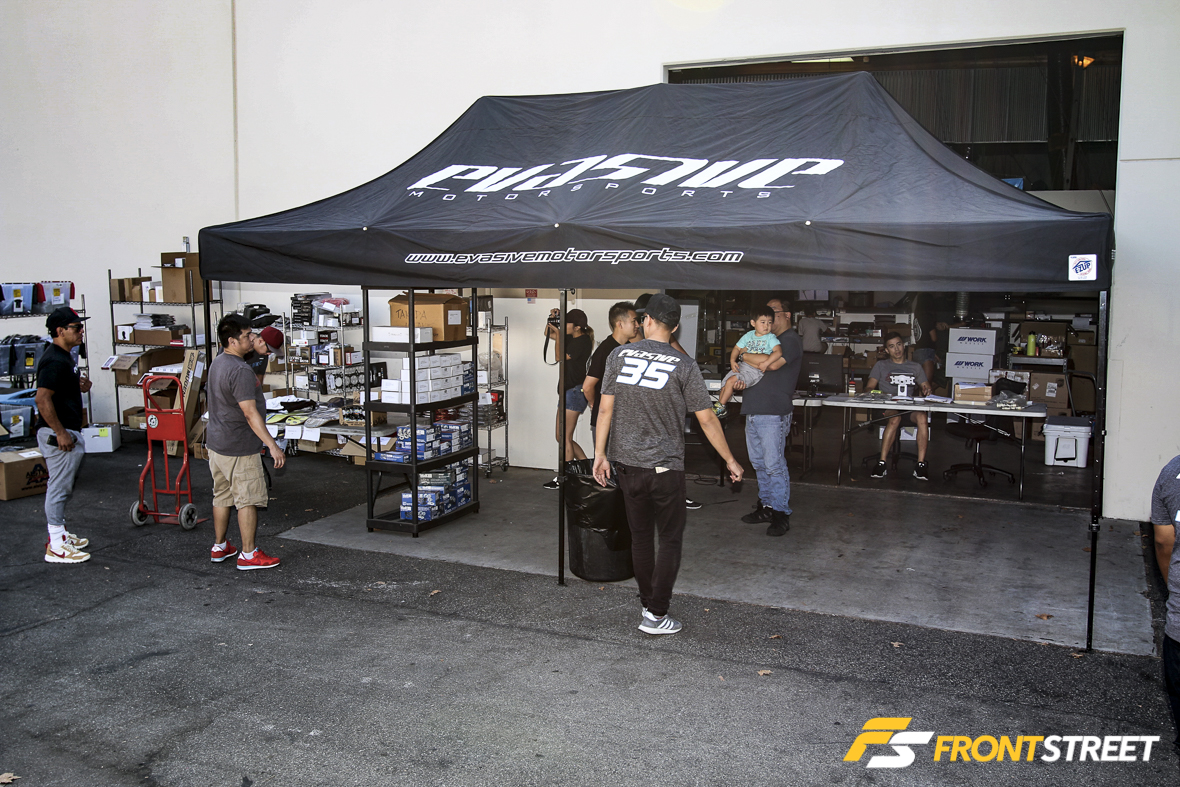 Evasive is one of the largest Rays wheels distributors on the West Coast so it wasn’t surprising to see a flood of brand new wheels for sale at the event. Among the surplus of Volk Racing wheels were also a mixture of Enkei Wheels, Buddy Club Racing, and Work Wheels also being blown out.