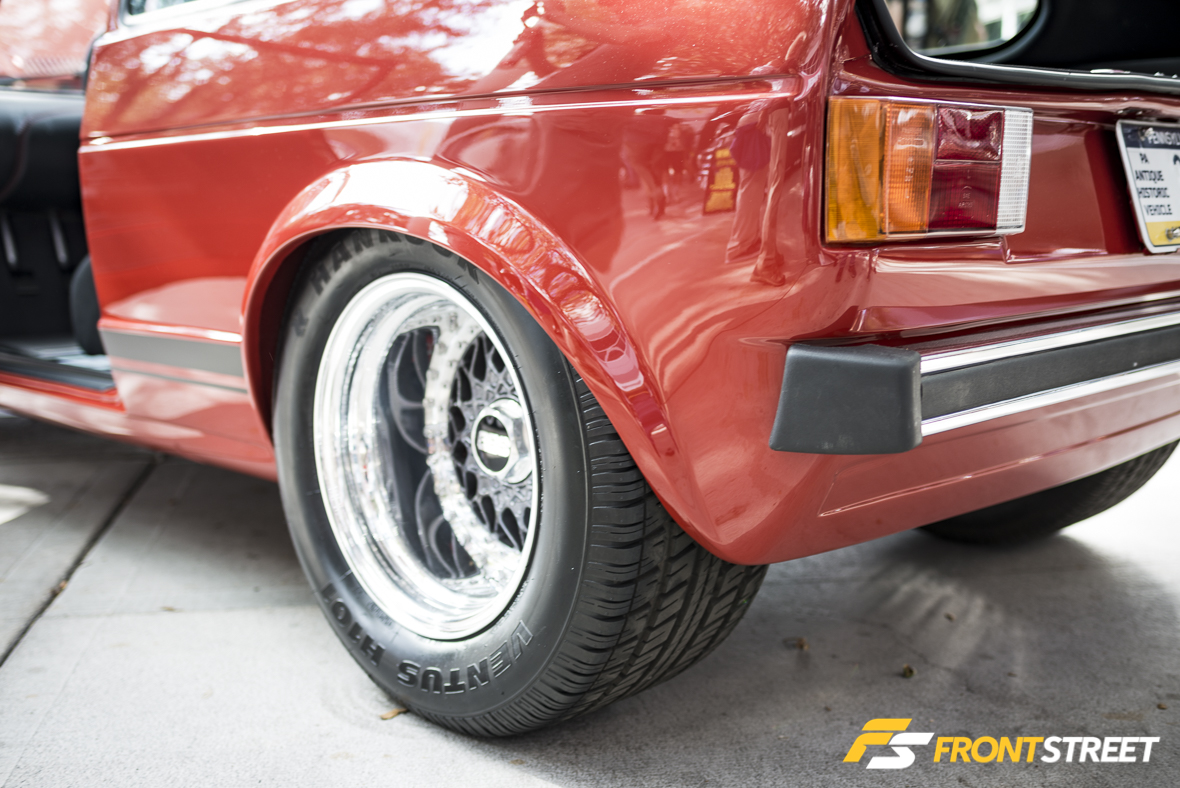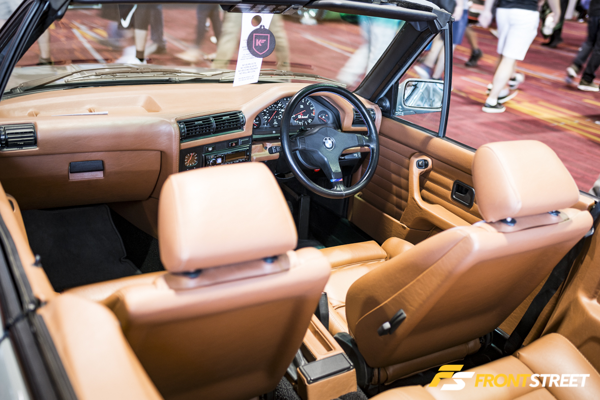 At the risk of being Porsche heavy in this article I’m going to continue citing them, there were just too many excellent examples from the Stuttgart-native moniker to ignore. This perfect 356 specimen located outside the Central Hall doors was tough to capture vacant all week. Its subdued grey paint, one-off Rotiform wheels fit for the build, and the Accuair-assisted squatting ride height were a delight for passersby throughout the week. Truly a statement when a 57-year-old automobile can create this much buzz at an event centralized around innovation and modern technology.