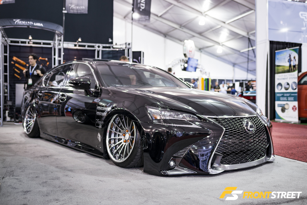 TDemand’s booth housed two incredibly low Lexii (that’s the plural for Lexus, right?). The first a stunning black LC500 model, while the other a vaguely less stunning GS. The pair of black Lexii was modified using matching orange TDemand suspension and braking products, with SSR Executor CV04S wheels strapped to all four corners. The combination of exceptionally low matching black luxury cars made for one of my favorite setups of the event.
