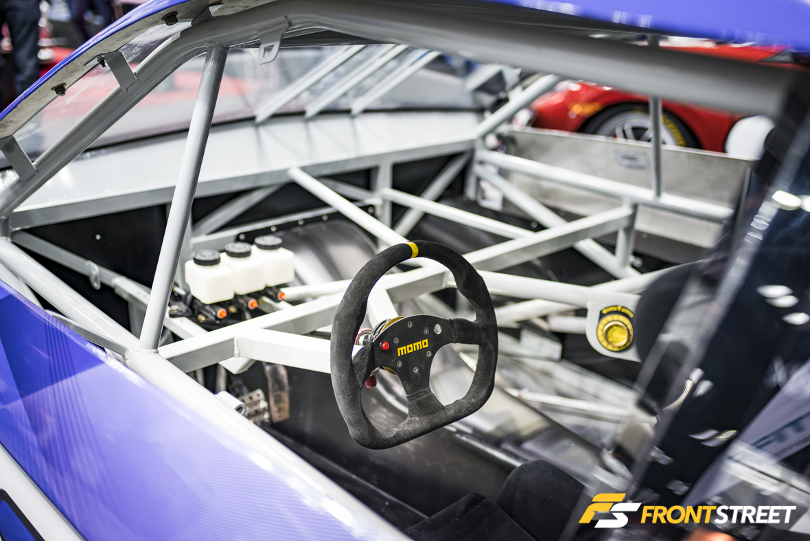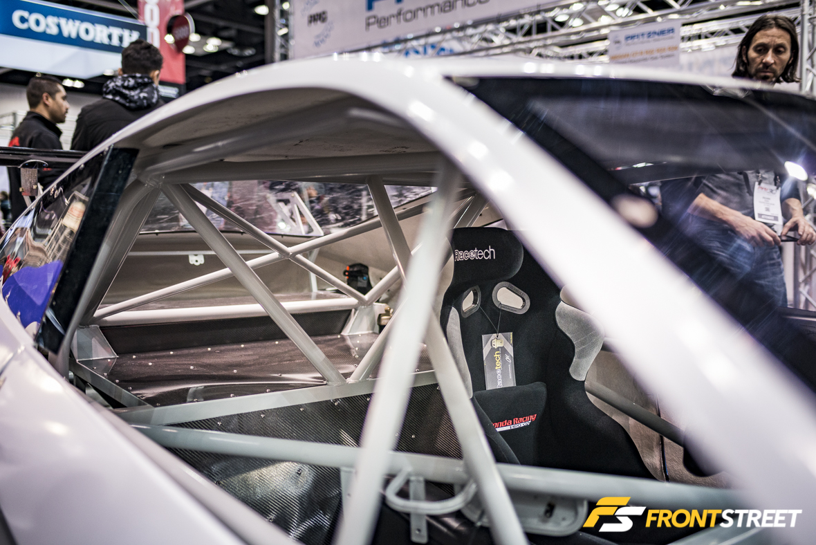 Let’s start with a personal favorite, the Honda Racing / Honda Performance Development (HPD) booth. Parked without its nose piece on the corner of their booth was the new Civic GT Concept Race Car. A Frankenstein 2.4-liter engine—K24 block with a K20 head—powers this combination of tube chassis and fiberglass bodywork, while an S2000 transmission transfers the power to the rear wheels. Yes, it’s rear-wheel-drive. It is only a concept, so its actual use is still a mystery, but it could offer an inexpensive GT race platform in the near future.