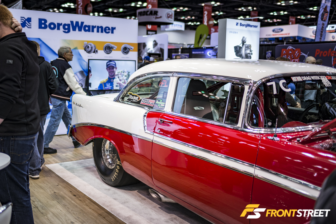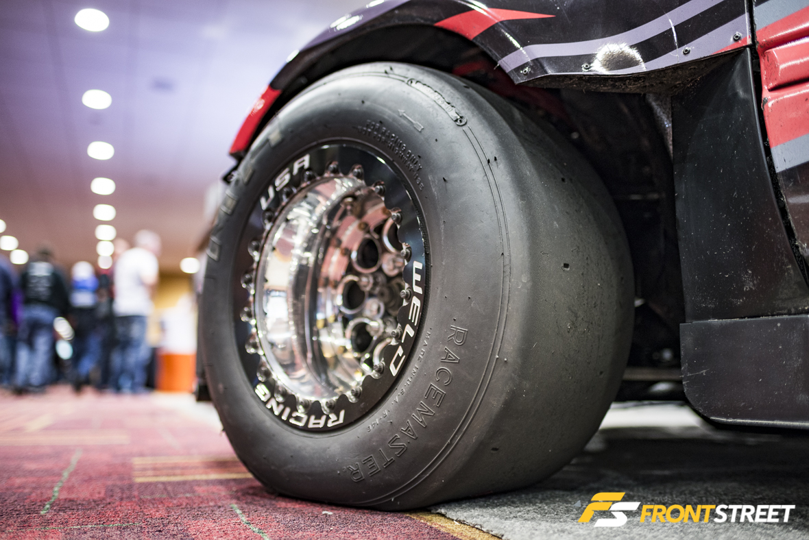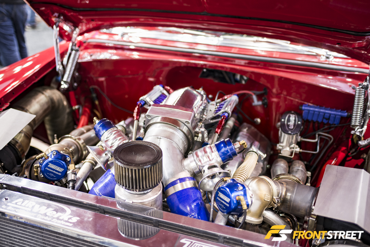 We’ll end with a vehicle built for a completely different kind of racing discipline—landspeed records. Initially purchased as a family truck, David Pilgrim’s 1954 Chevrolet Truck in the ARP Hardware booth was transformed into a company truck once Pilgrim started his own Harley-Davidson shop. Now having undergone a new transformation, the very same truck is fit for a new life as a tube-frame racer with Pilgrim & Stubbs Landspeed Racing. Outfitted with a completely mental quad-turbocharged Duramax engine pushing over 100 pounds of boost, the power numbers aren’t public but we’re sure the truck should produce some serious speed in Bonneville. It also is equipped with ARP hardware in every possible threaded opening throughout the chassis, which made it an obvious choice for display.