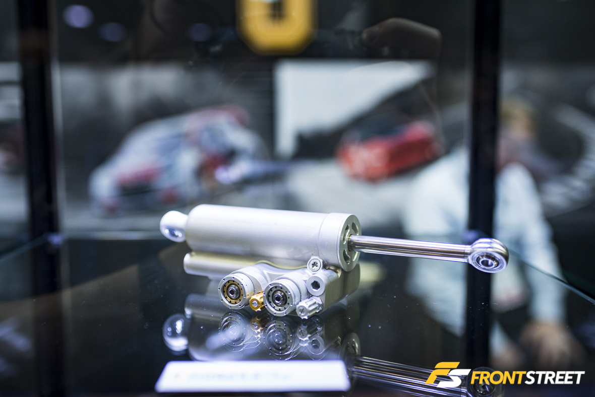 It really is inspiring how many automotive part manufacturers are involved with the highest end of motor racing. Here we have an Ohlins damper previously used on a Toyota Formula 1 car. This piece is no longer than my hand due to space constraints on the technical chassis, and the everlasting quest for lighter weight, yet it provides stability to some of the harshest suspension loads found in the world of motorsport. It is four-way adjustable with re-clocking and re-centering capabilities, so the adjustability of the damper is never compromised by any certain setting. By now this technology is outdated in the realm of Formula 1, so some of these innovations—like the compact adjusters—have already trickled down into commercial versions of Ohlins dampers.