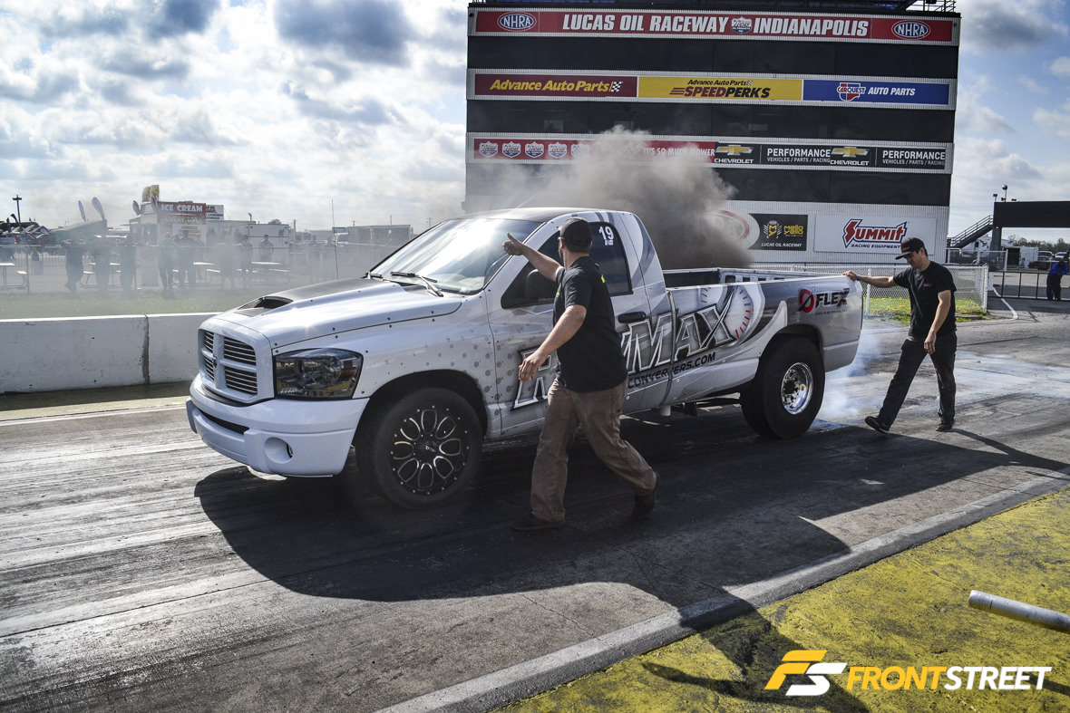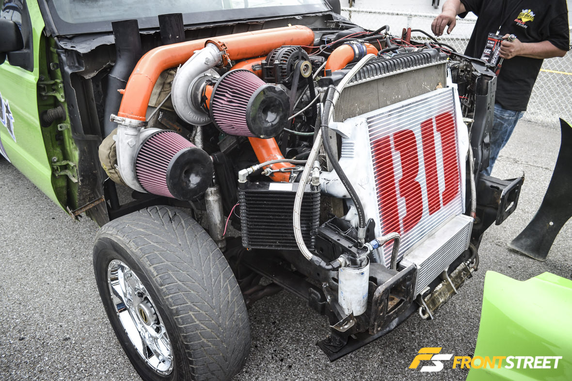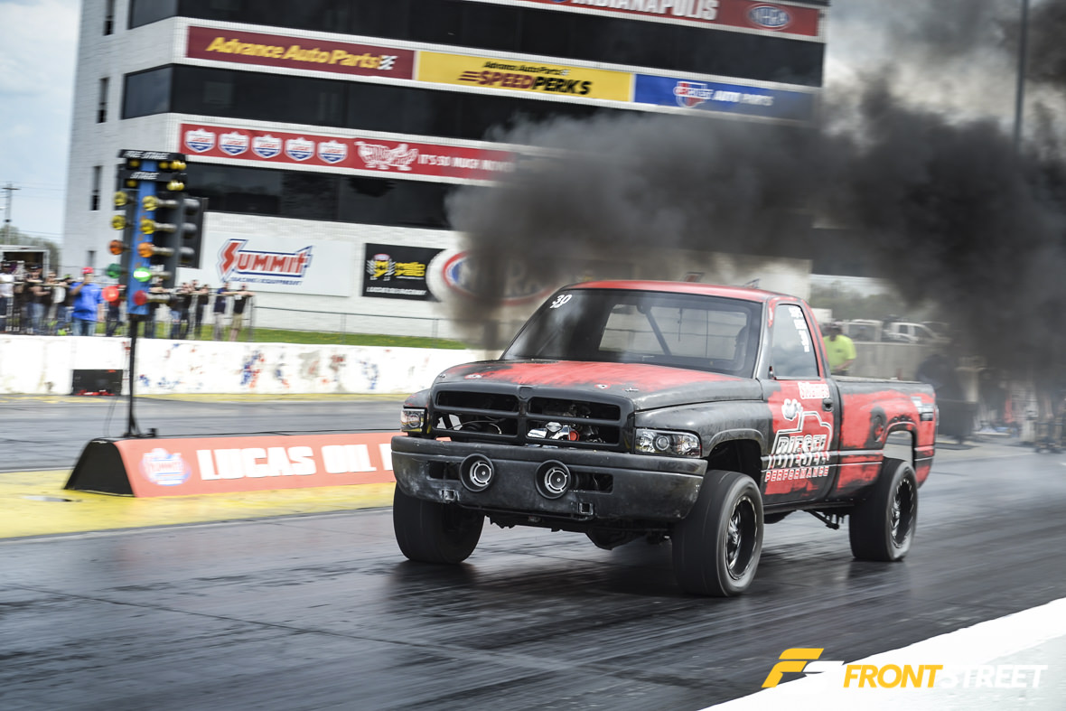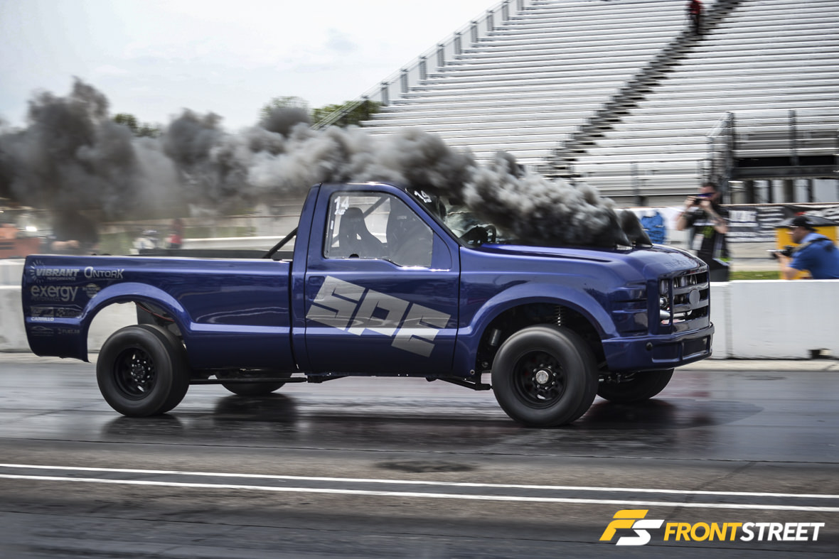 The big news for Trevor Peterson in the Industrial Injection sponsored Dodge, was the insane 2,109 horsepower dyno number. Unfortunately Trevor had trouble spooling at the dragstrip, only running a 10.06, which kept him out of the lead. Still Trevor put on an excellent show, and his power number means he’ll be one to watch next year.
