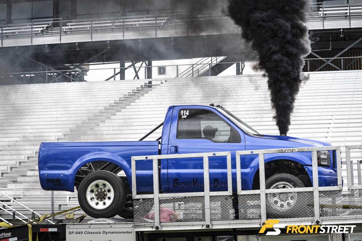 The top GM of the field went to the Husker Diesel entry, which motivated the Allison 1000-shifted truck down the quarter mile in 9.24 seconds, and cranked out an impressive 1,816 rwhp on the dyno. Jess was another truck that would get bit by the sled pull, as a mid-pack 255-foot pull meant a Ninth place finish.