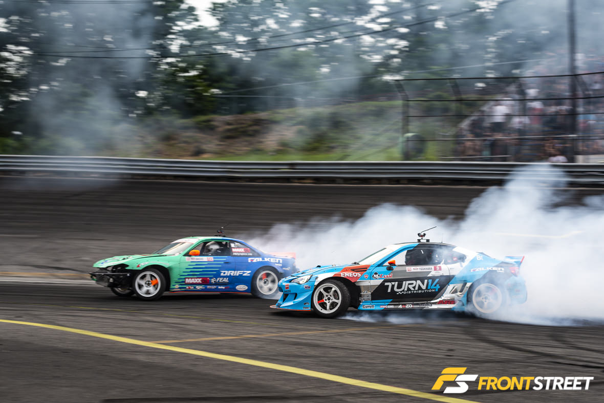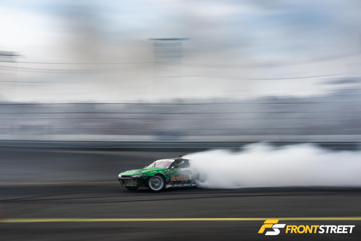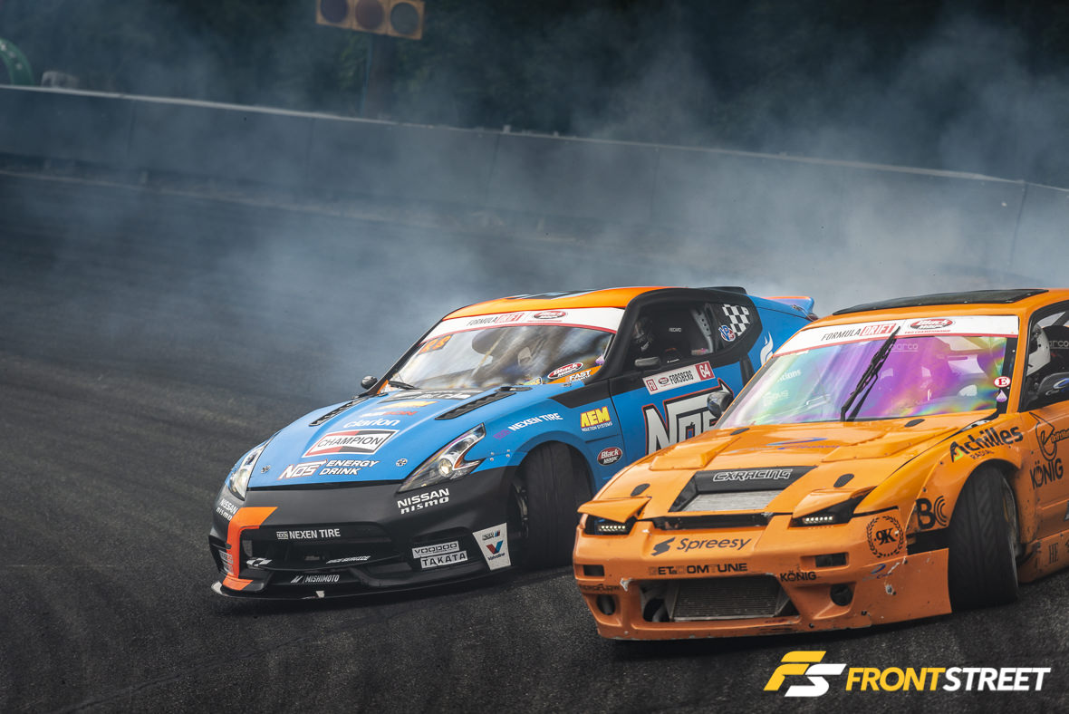 As fate would have it, once the competition’s match-ups were generated based on qualifying position, Kearney was placed against Wang. The twin green S15’s put on such a solid tandem performance together, it could have been mistaken for a drift demo. However due to Kearney’s nominal contact with the wall after the duo switched positions, the win was handed to Forrest Wang. Regardless, it was a terrific sight to watch two of the sport’s talented drivers duke it out in matching cars.