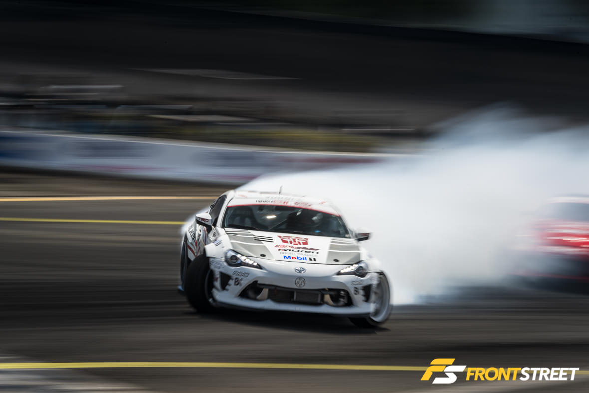 Probably the most unusual piece of the weekend was the relatively straightforward final battles of the night, which involved a myriad of only Falken Tire-sponsored vehicles. Now, I would never refer to any Formula Drift competition as boring, but I would say this round’s last tandem combinations were certainly without the drama usually associated with the end of FD rounds.