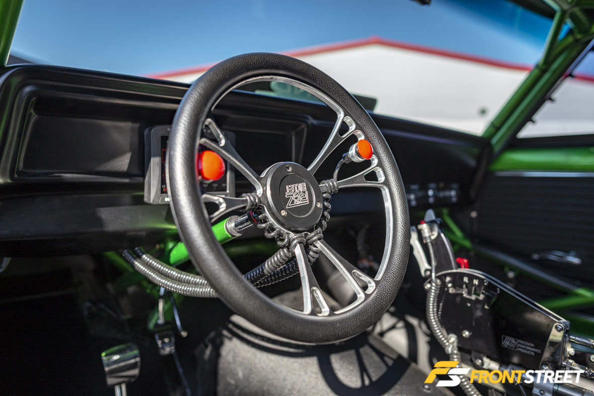 “My dad loved Chevy IIs, so naturally when I wanted to switch up from racing heavy-ass diesel trucks, the Chevy II is what I started looking for. I actually tried to buy back his Chevy IIs, but when I went to look at them I realized they weren’t even worth much as far as parts go, and it was better off to let them lay where they lie as they were too far gone. I found another Nova that had a restoration started on it and they quit right after the strip process, so it was basically a perfect carcass to start with. I scooped it up and did some work on it, went to PRI to do some shopping, and boom: I walked around the corner to see this car for sale in the TBM Brakes booth,” explains Milliken.