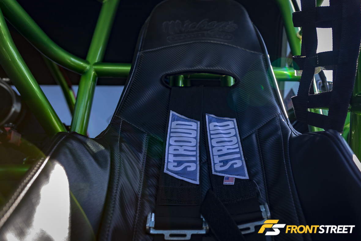 The car belonged to Tessneer for eight years, but was only raced for two before it was put up for sale and Milliken purchased it, with visions of radial-tire racing dancing in his head. With the shell brought home as a roller, he and teammate/crew chief/co-driver Daniel Pierce swapped the car into diesel trim in a matter of eight weeks and spent the entire 2017 season sorting the car out. They have a limited amount of time to play with it; not only does Milliken run Hardway Performance Solutions every day, he’s also the Managing Partner of Emerald Coast Dragway, an eighth-mile dragstrip in Holt, Florida.