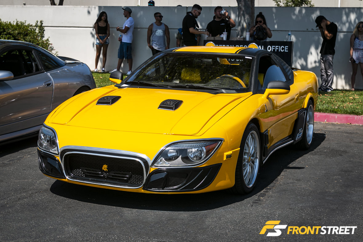 Circling towards the rear I was dumbfounded by the Bugatti-style engine ducts and Lamborghini rear lights. Then it suddenly dawned on me that this wasn’t some European supercar. It was actually a 3000GT that had gone under the knife. Crazy, right?