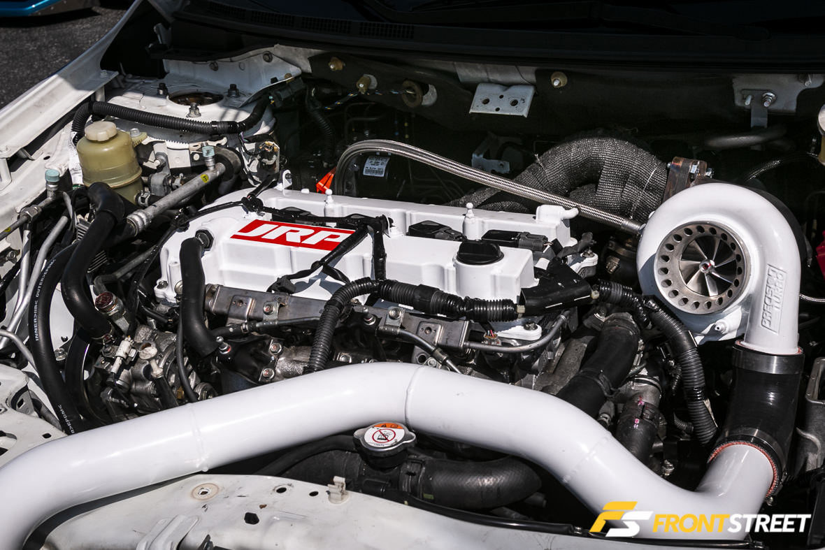 This machine produces serious power thanks in part to its custom-fabricated long-tube turbo exhaust manifold which locates a Garrett turbocharger just behind the front bumper.