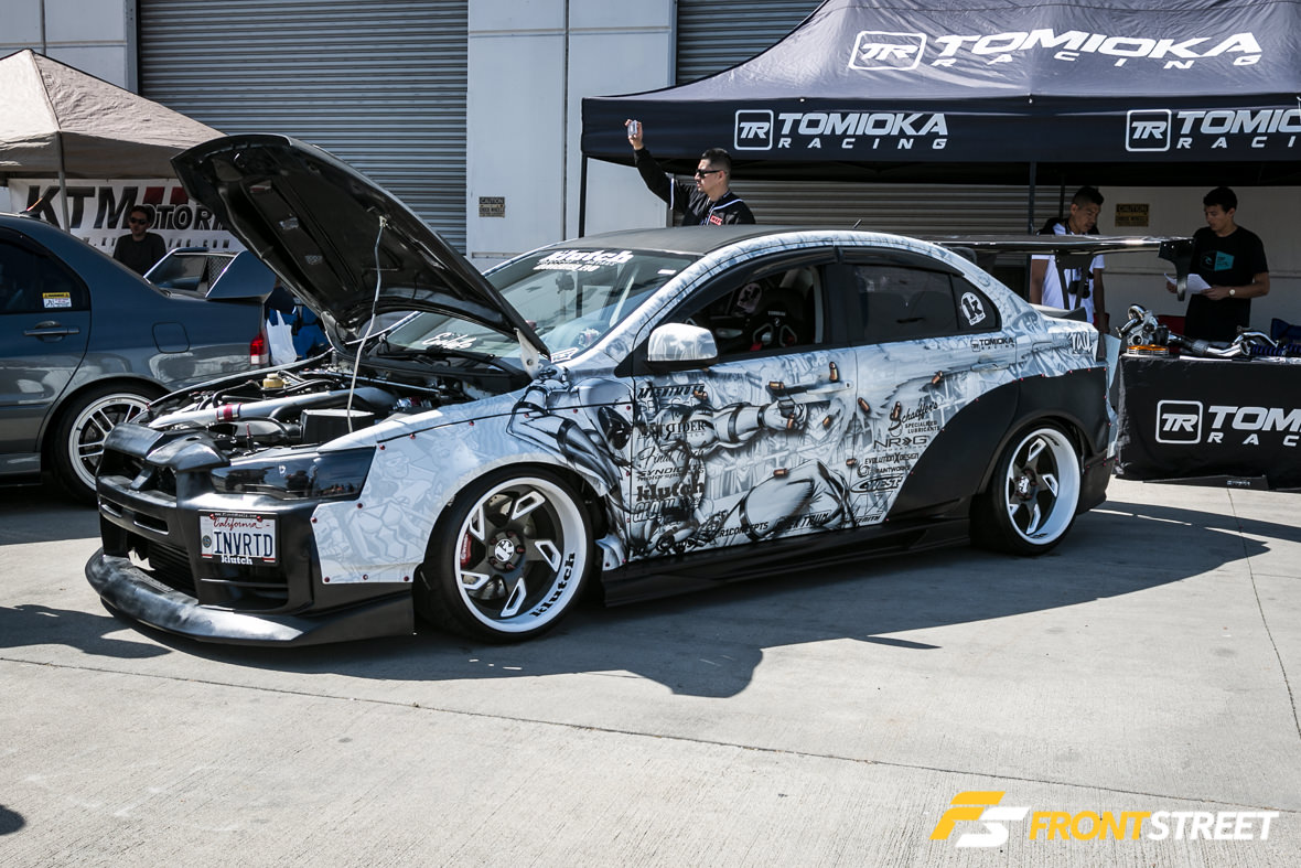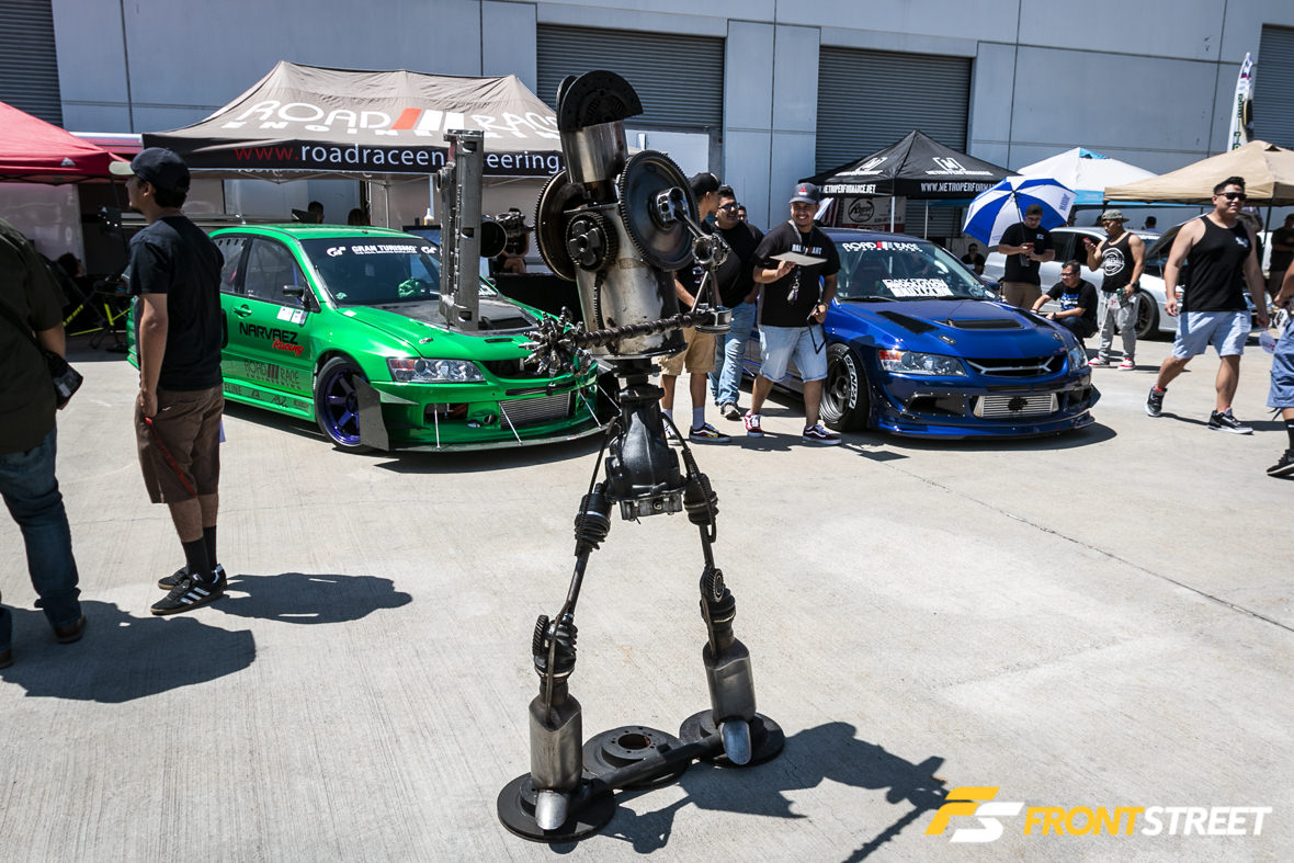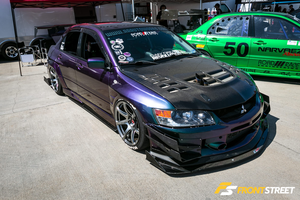 While I attempted to hold a conversation with Mike Kojima—founder of Moto IQ and chassis engineer for Formula Drift champion Dai Yoshihara—I found myself screaming at the top of my lungs, in hopes of overpowering the sporadic turbo spooling and staccato exhaust backfiring coming from this EVO, which was spinning the Road Race Engineering Dynapack Chassis Dyno during this year’s dyno competition.