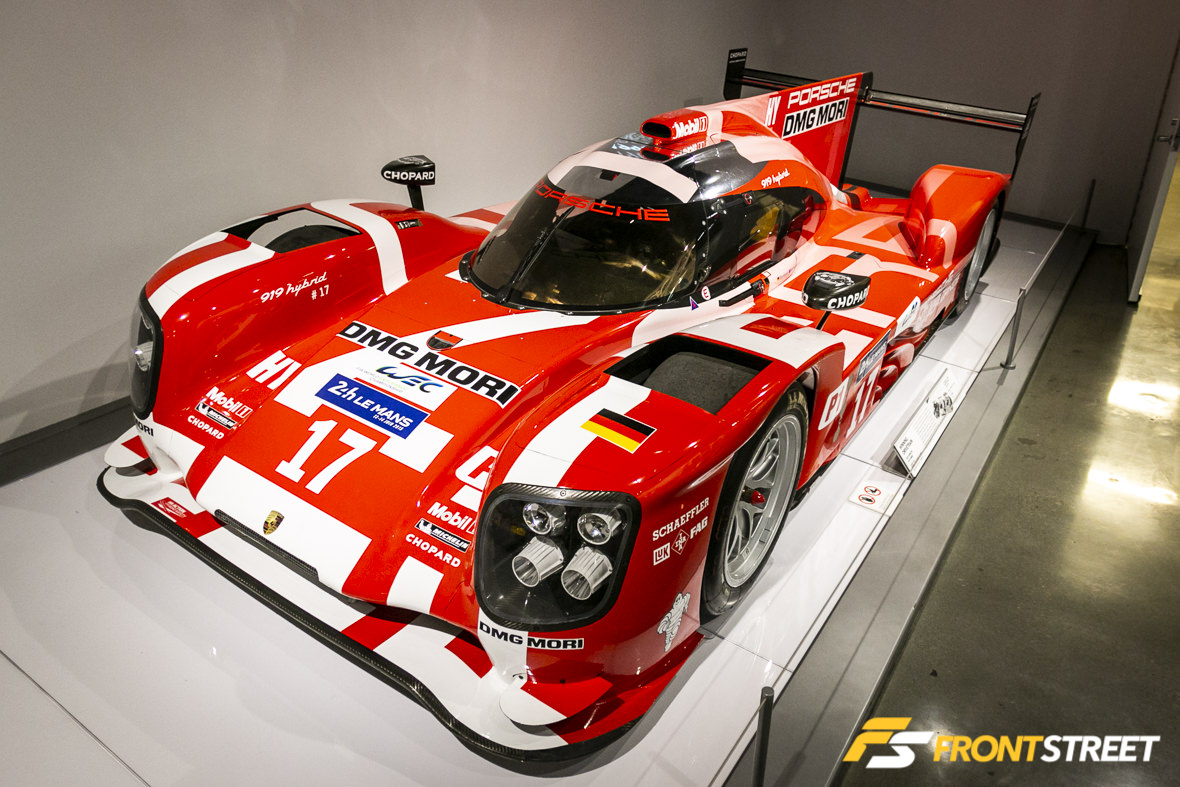 As I walked through the entrance doors into the main lobby, I was immediately greeted by a powerful pairing of two iconic vehicles, a ’97 Porsche 911 GT1 and 911 GT1 Strassenversion. The red and white machine competed back in ’97 in the 24 Hours of Le Mans and is credited with 21 podium finishes with eight overall wins over its race career.