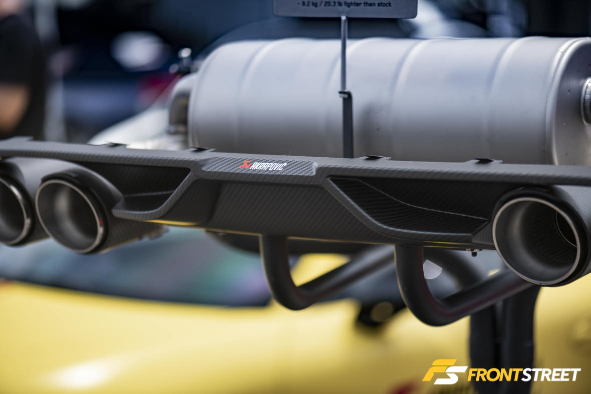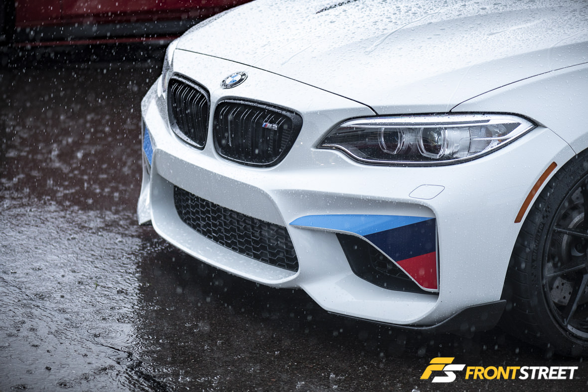 This year Auto Couture was joined by a couple special guests from the Illinois-based BMW tuner, IND Distribution. IND is arguably one of the largest and most well-known tuners and parts retailers for modern BMWs in the U.S., so it was exciting to see some of these projects in person for the first time. The first car was one of IND’s latest projects, the Gelbgrün (yellow-green) M2, which sports a modified M4 GTS front lip, M4 mirrors, and a pair of BMW Motorsports M235R 24-hour foglights with custom carbon fiber mounts.