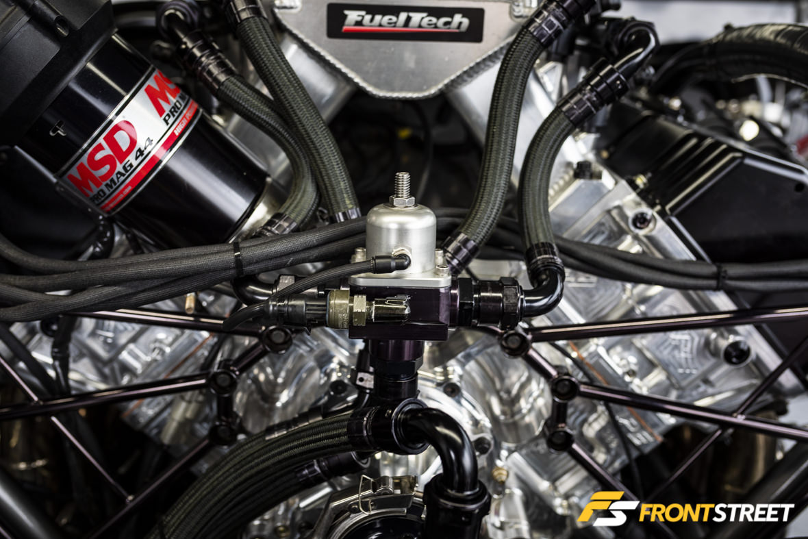 Blake’s father, Joe, is the man behind this machine, and is a longtime racer from the Philadelphia area. When he decided to build this car, the decision was made to use only the best of the best parts available, and as a result, he went straight to the team at Pro Line Racing to hook up with one of the company’s Hemi engines based around the Alan Johnson Performance Engineering billet engine block and heads.