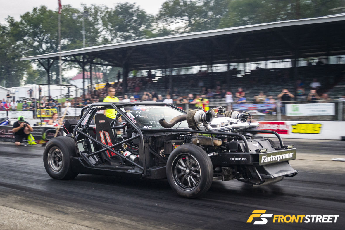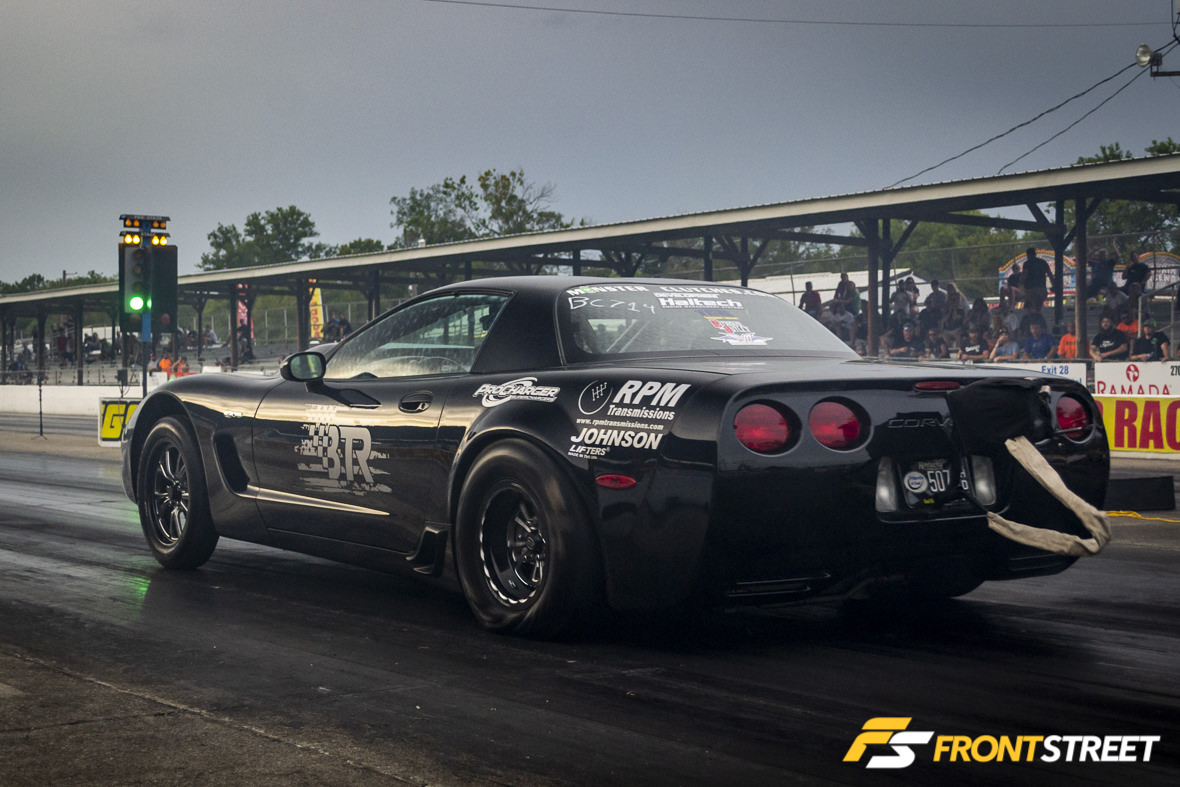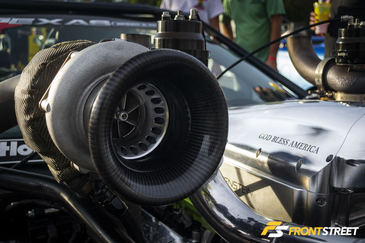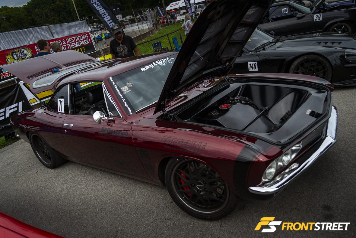 Sunny skies provided a great track surface for some drag racing. Many of the classes were able to some time runs in before qualifying started. Justin Keith’s “Stangklr” custom-blended Nardo Grey wide-body Corvette paired with Weld Racing S77 wheels was hands down the best looking C7 on the property, in my opinion. Justin was able to turn in a new personal best pass on the dragstrip this weekend with an 8.67 at 152 MPH. The major modifications to the car are the Late Model Engines 416 cubic-inch LT1 engine topped with Frankenstein Engine Dynamics cylinder heads, a Powerglide transmission, and the B&B Bullet exhaust. Oh, and the F1A-94 ProCharger supercharger.