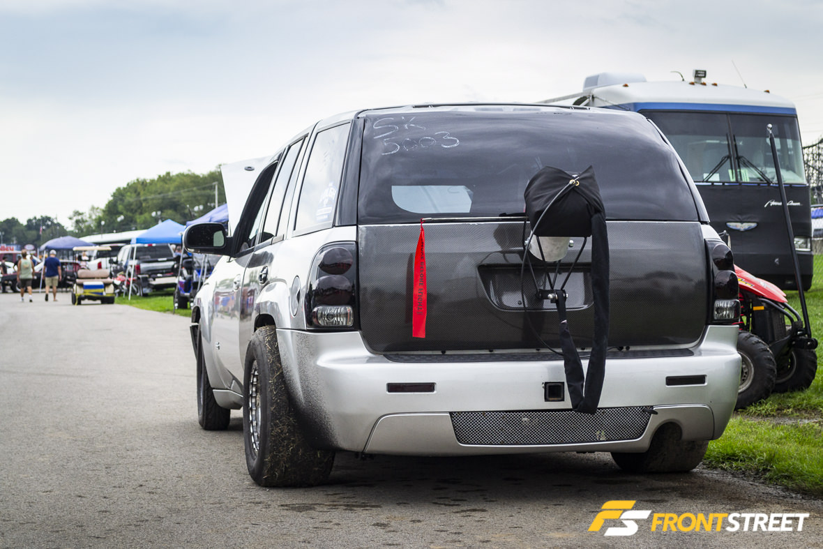 On the racer’s side of the pits I stumbled across this unique convertible Blazer called “Open Container”. This 4.5L Whipple-boosted LS is owned by Kari Bahus. Kari is physically disabled, but he doesn’t let that stop him from driving his Blazer; he has built and turned wrenches on the whole truck and even made a full custom hand-control setup. This was his third weekend out with the Blazer, and he was looking to get some solid testing done and get a feel for the truck with more power.