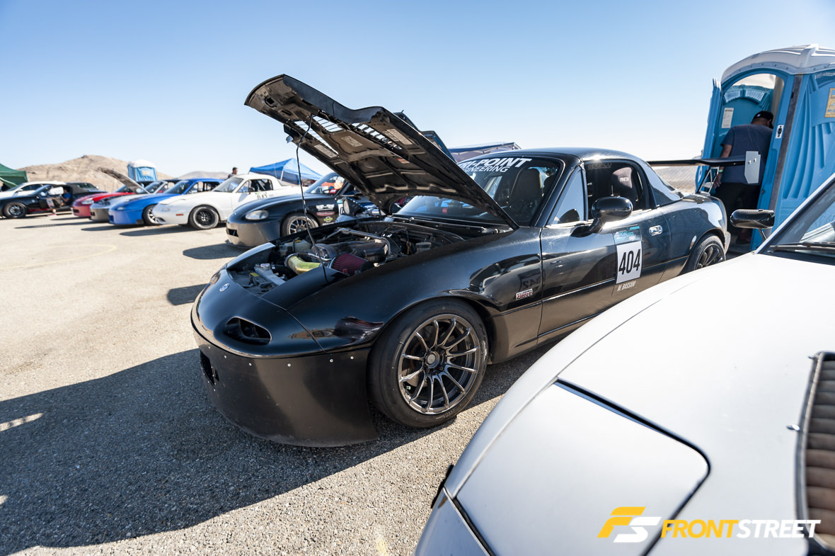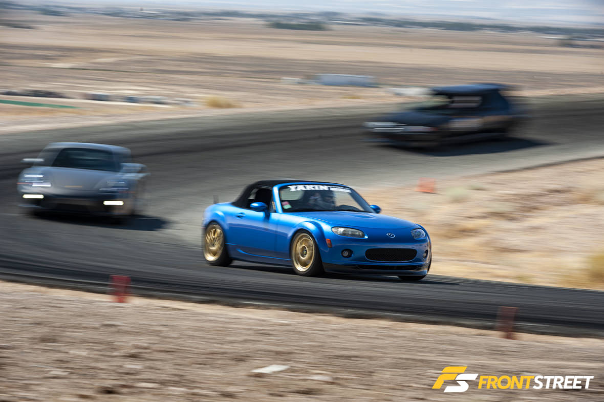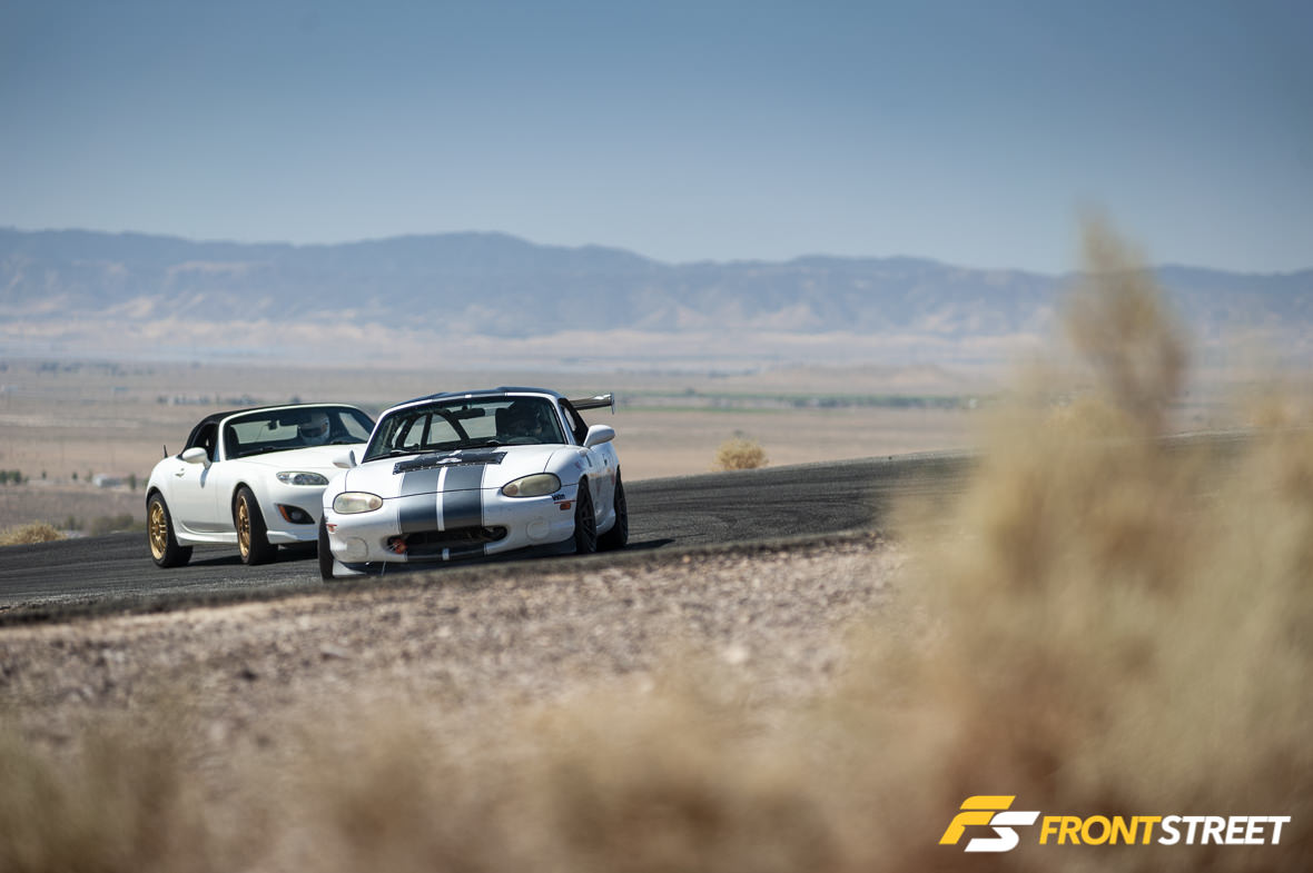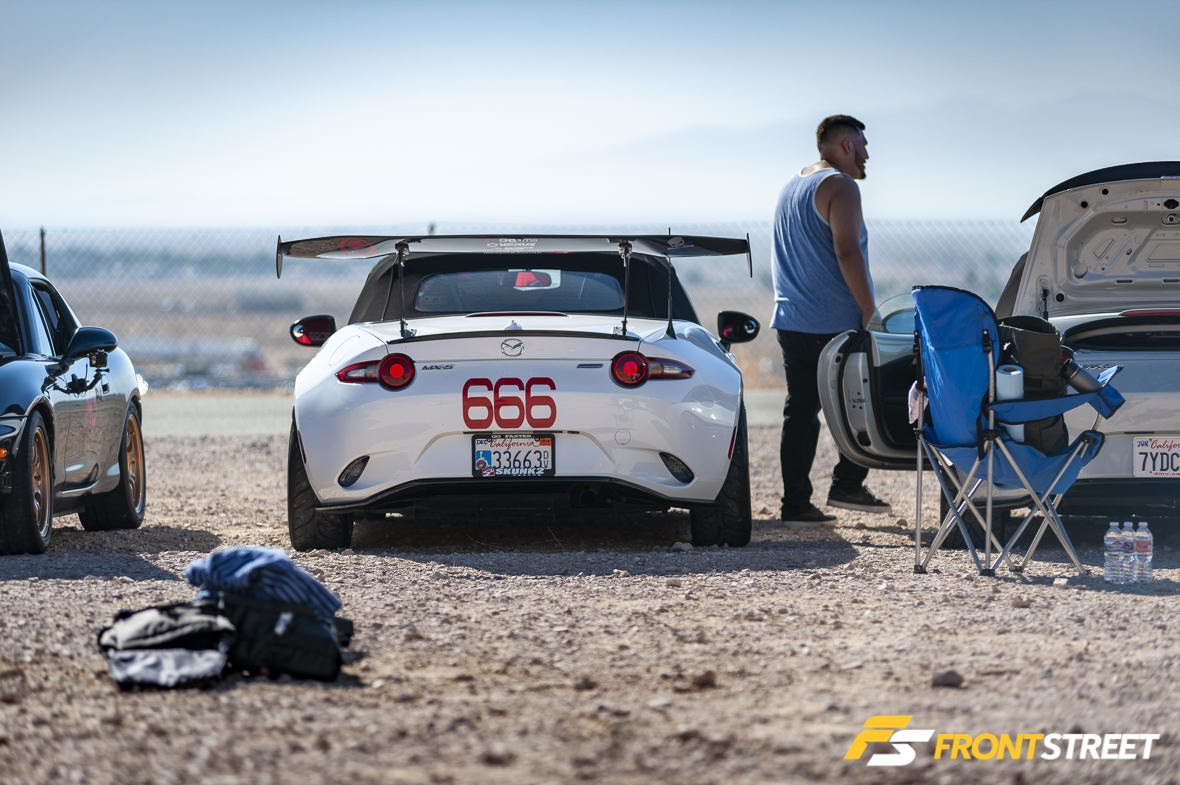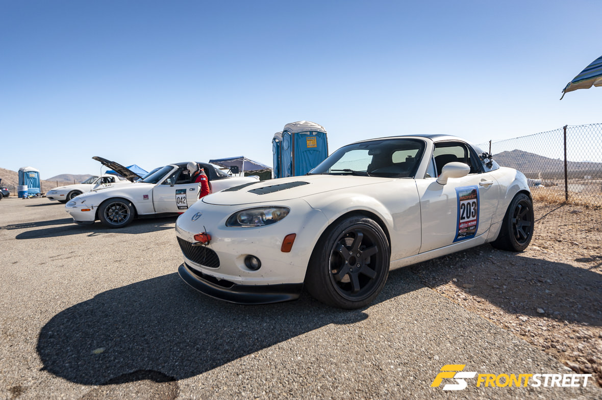 Changing things up from most Extreme Speed events, this year’s MazFest took to the tarmac and pit area of Willow Springs’ Horse Thief Mile track, which is known mostly for its pro-am drifting competition and bashes, and that one-off VTEC Club round last year. Narrow and laden with tight turns, tons of elevation, banks and drop-offs, it’s not the ideal track for powerful cars and wheel-to-wheel racing. But those exact properties (designed to mimic a southwestern mountain pass) make it a fun and fitting course for Mazda’s tight, nimble roadsters and compacts.