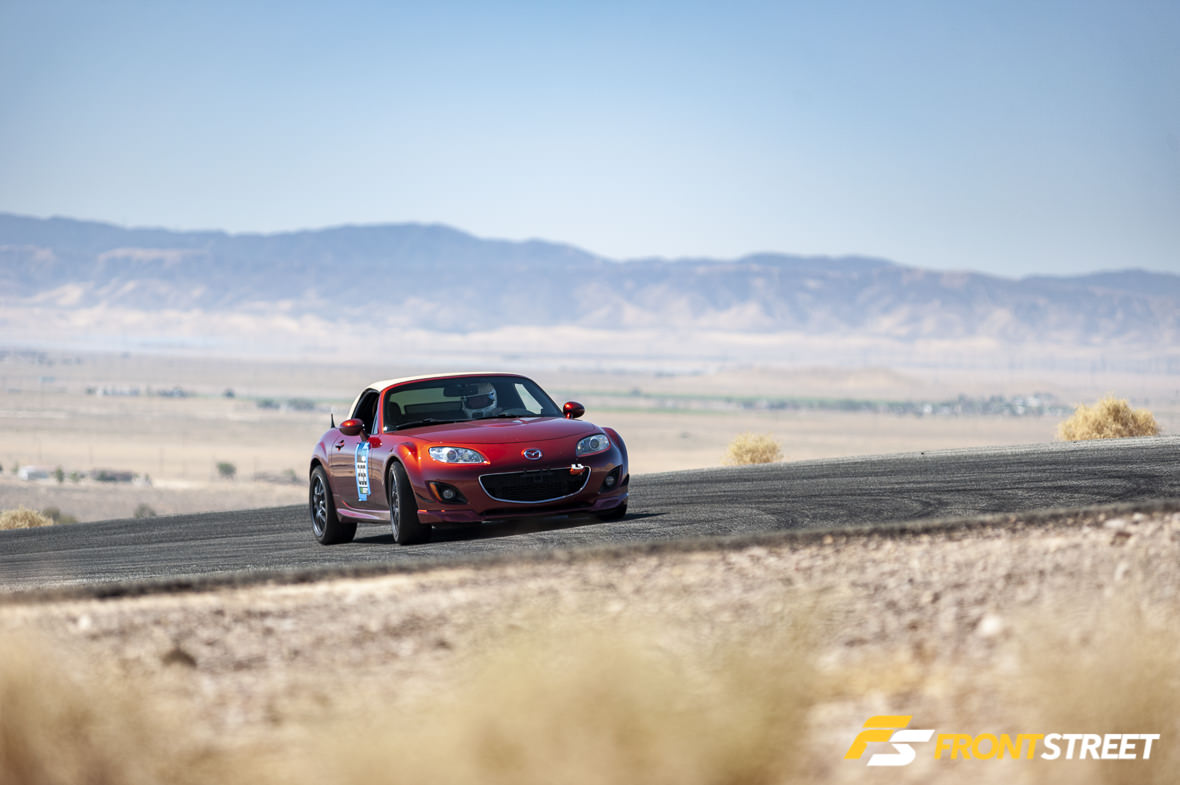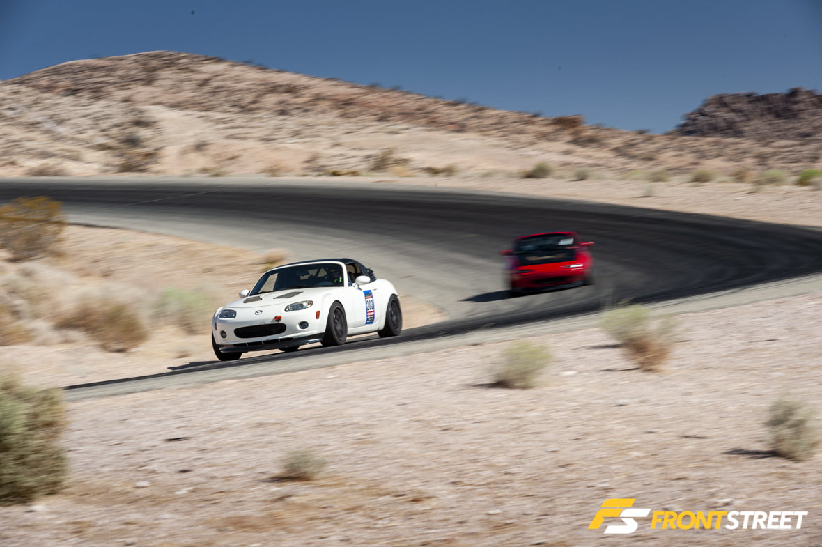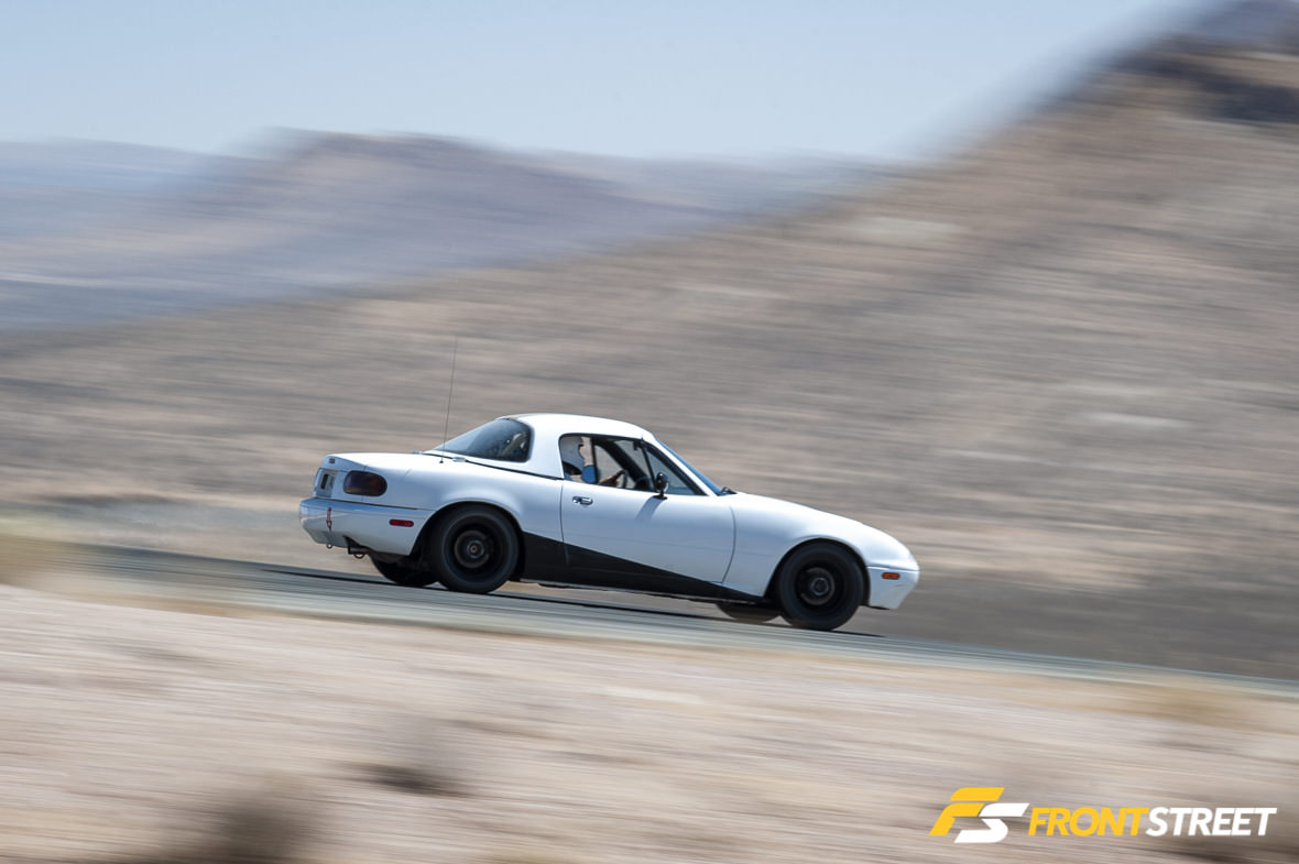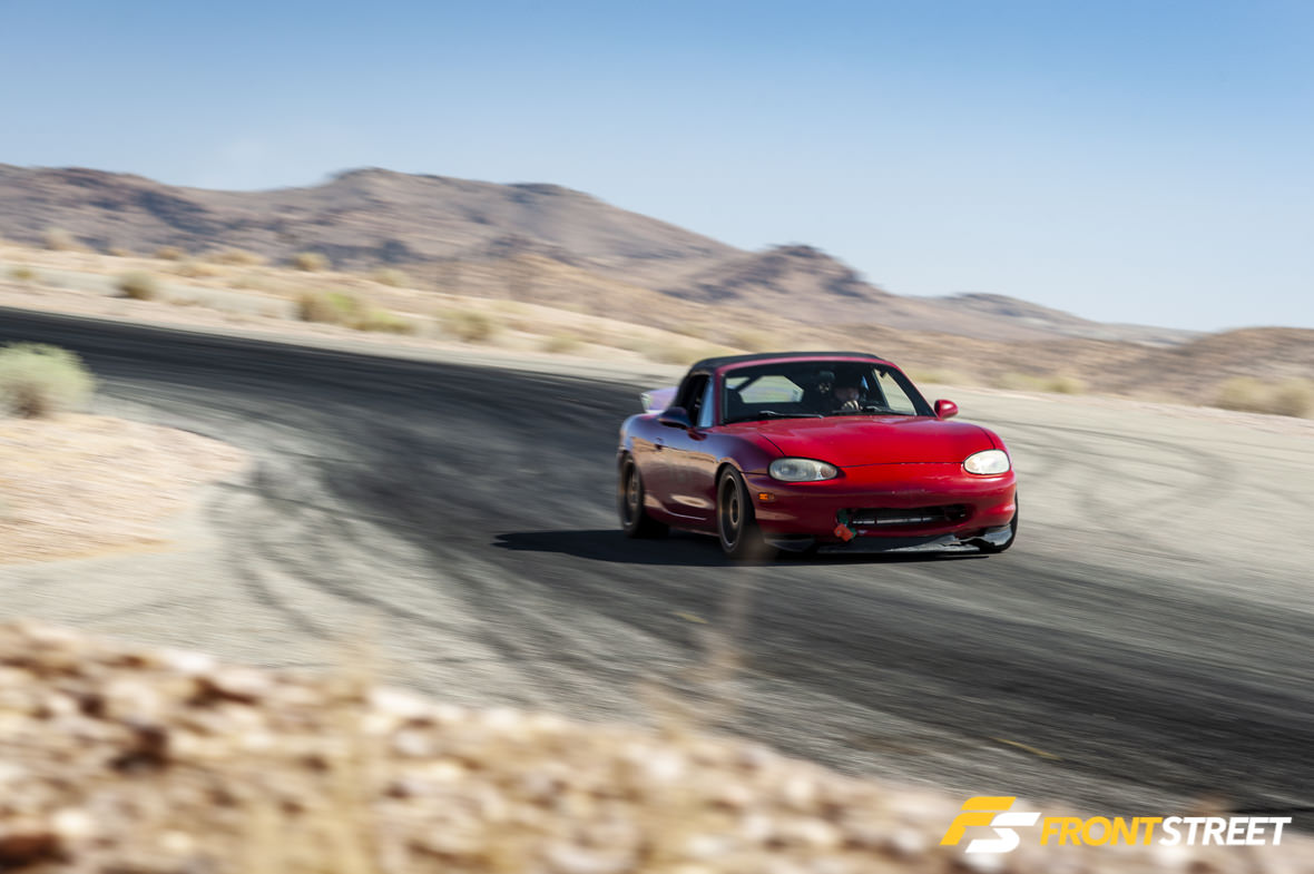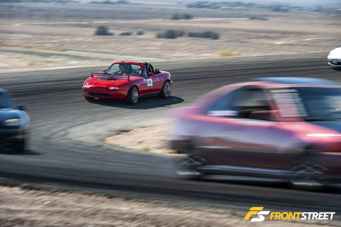 Changing things up from most Extreme Speed events, this year’s MazFest took to the tarmac and pit area of Willow Springs’ Horse Thief Mile track, which is known mostly for its pro-am drifting competition and bashes, and that one-off VTEC Club round last year. Narrow and laden with tight turns, tons of elevation, banks and drop-offs, it’s not the ideal track for powerful cars and wheel-to-wheel racing. But those exact properties (designed to mimic a southwestern mountain pass) make it a fun and fitting course for Mazda’s tight, nimble roadsters and compacts.