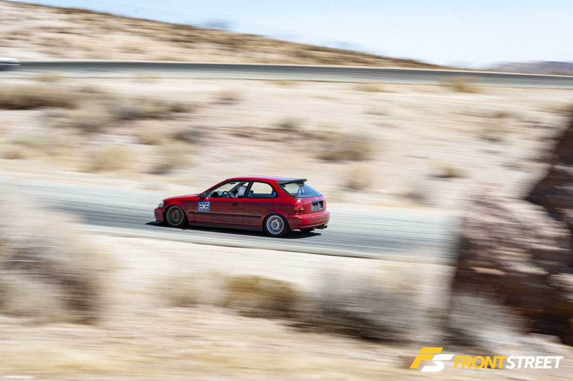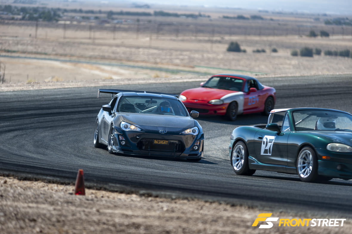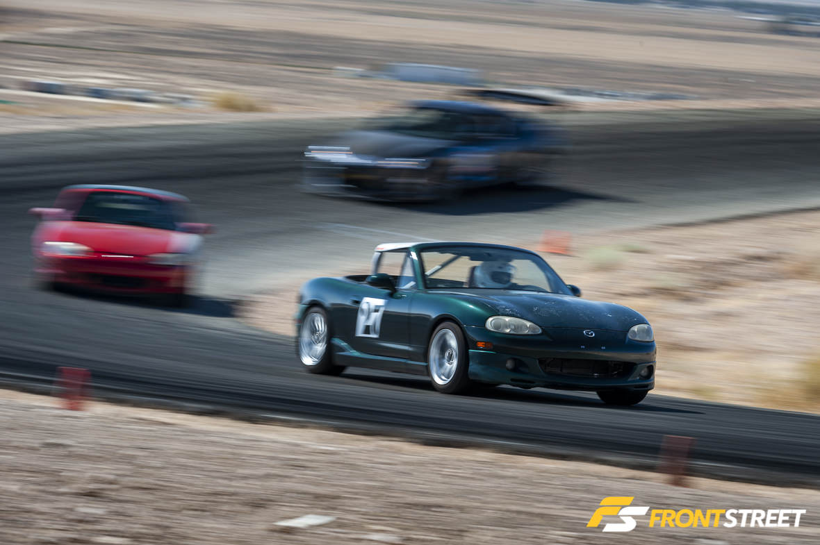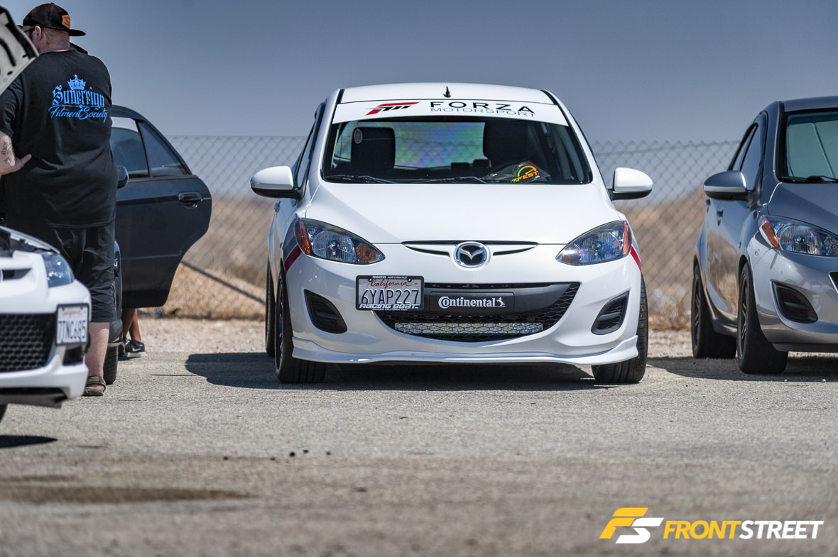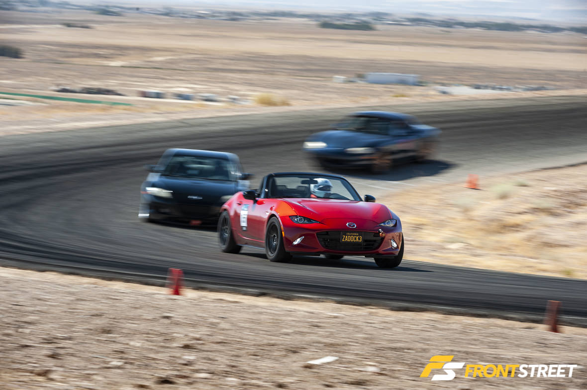 Changing things up from most Extreme Speed events, this year’s MazFest took to the tarmac and pit area of Willow Springs’ Horse Thief Mile track, which is known mostly for its pro-am drifting competition and bashes, and that one-off VTEC Club round last year. Narrow and laden with tight turns, tons of elevation, banks and drop-offs, it’s not the ideal track for powerful cars and wheel-to-wheel racing. But those exact properties (designed to mimic a southwestern mountain pass) make it a fun and fitting course for Mazda’s tight, nimble roadsters and compacts.