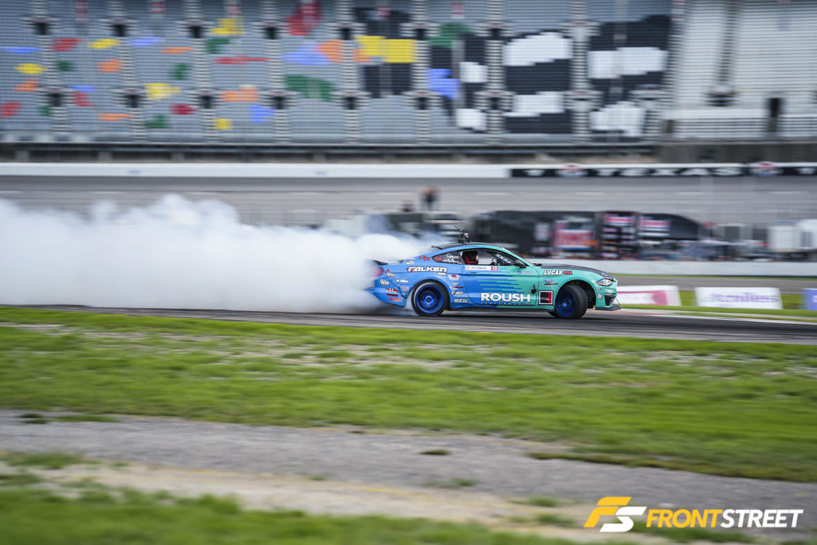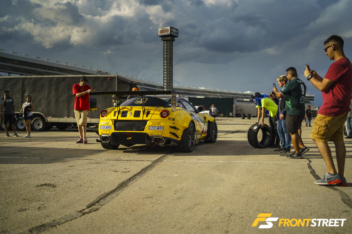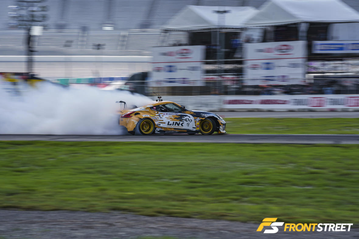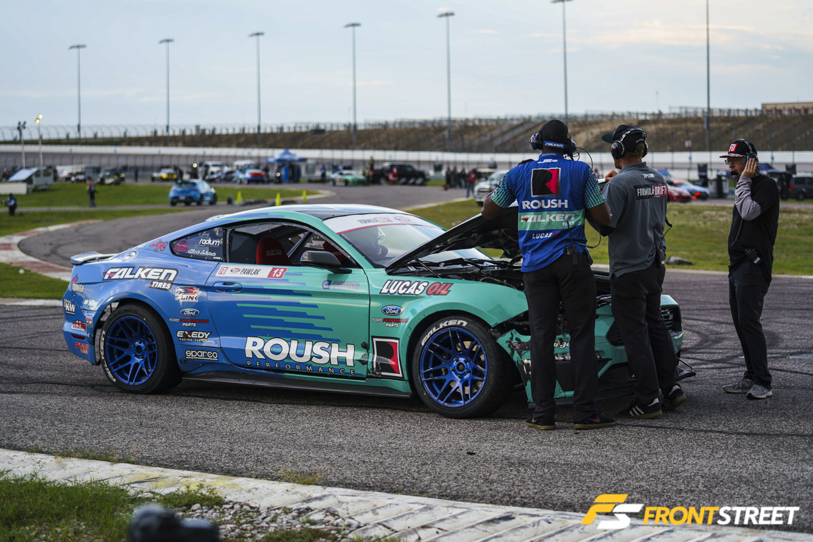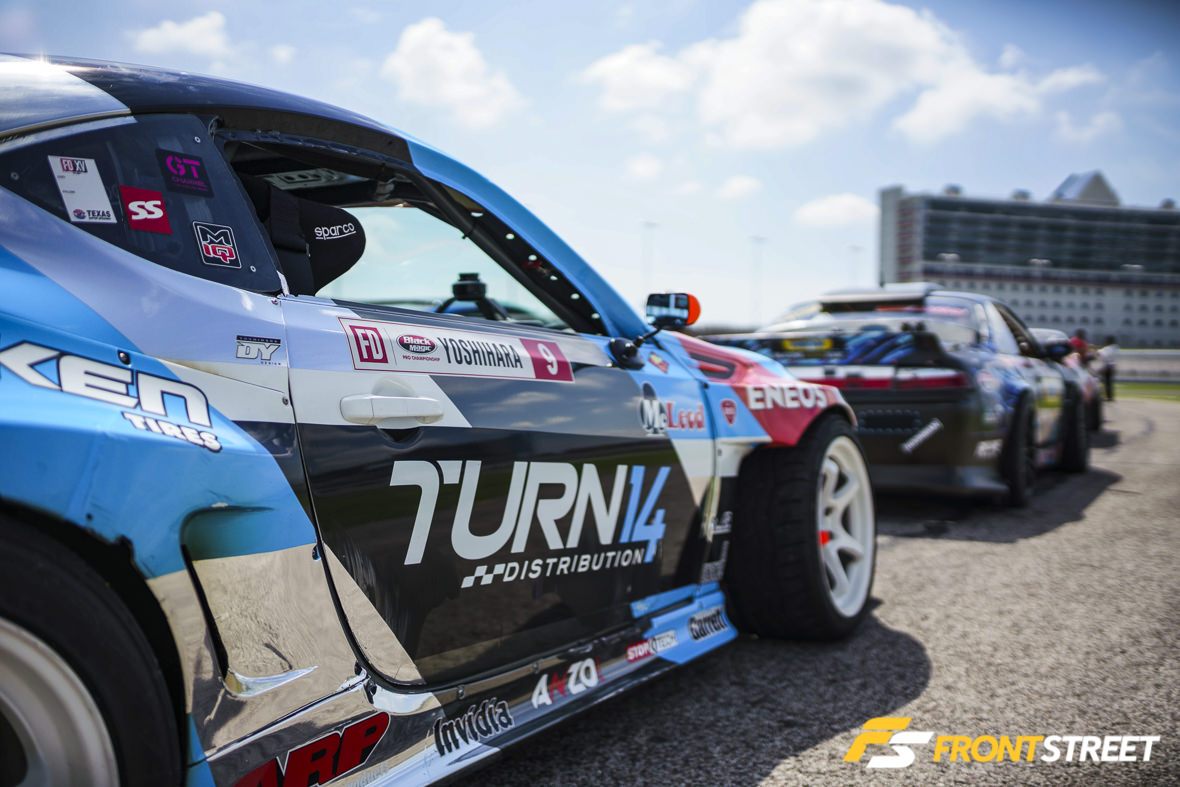 The saying “everything is bigger in Texas” proved true during Round 7 of the Formula Drift series, courtesy of some gargantuan rolling thunderstorms the likes of which I hadn’t seen outside of movies. While Formula Drift is no stranger to wild weather, this round provided a little bit of everything with spurts of heavy rain and lightning followed by clear skies and beating sun. Due in part to wet weather which occurred during the qualifying sessions, what should have been a Top 32 turned out to be a Top 30, meaning the top 2 qualifiers—James Deane and Alec Hohnadell—would be given bye runs and a free pass to the Top 16.