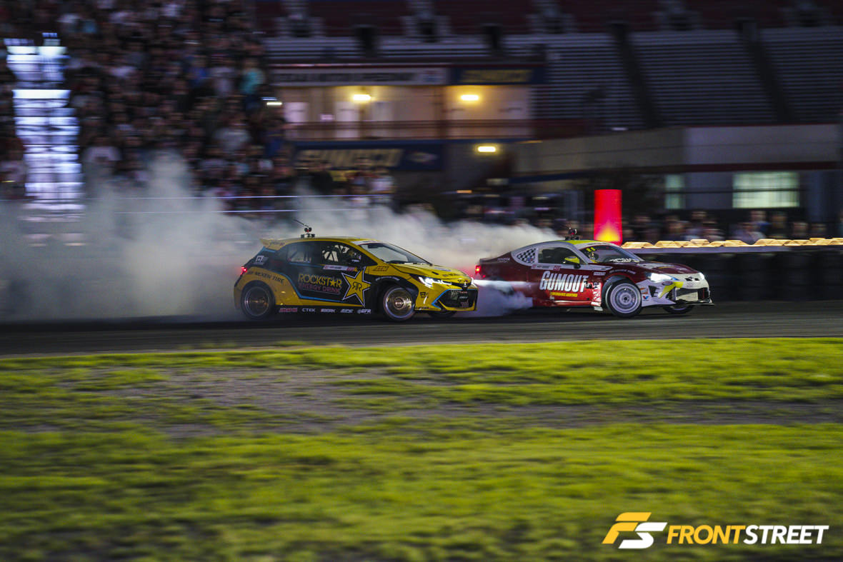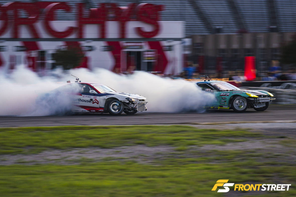 Quite possibly the best matchup of the day was the Final Four Battle between Chelsea DeNofa and Piotr Wiecek. It came down to Wiecek’s unimaginable chase run where he was able to keep his S15 on the door of the Mustang, despite DeNofa throwing billowing clouds of tire smoke his way.