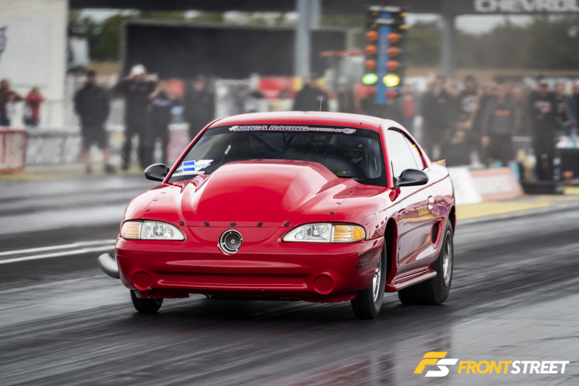 We saw another healthy field of cars in Edelbrock Xtreme Street, with a total of 18 racers rounding out the qualifying field. Coming into the race, points leaders Jessie Coulter and Tim Knieriem qualified at two and one, respectively, but they wouldn’t trade places on the leaderboard after all the tire smoke settled. Knieriem’s nitrous-powered Mustang couldn’t outlast Jessie’s turbocharged ‘91 Camaro who also fell in the round following Tim’s departure. This left Bill Trovato’s 2013 Camaro to duke it out with Lou Iacopetti’s Fox Body hatch (seen above) in the final round. Lou would ultimately raise to the top with a 7.757 to Trovato’s 4.792.