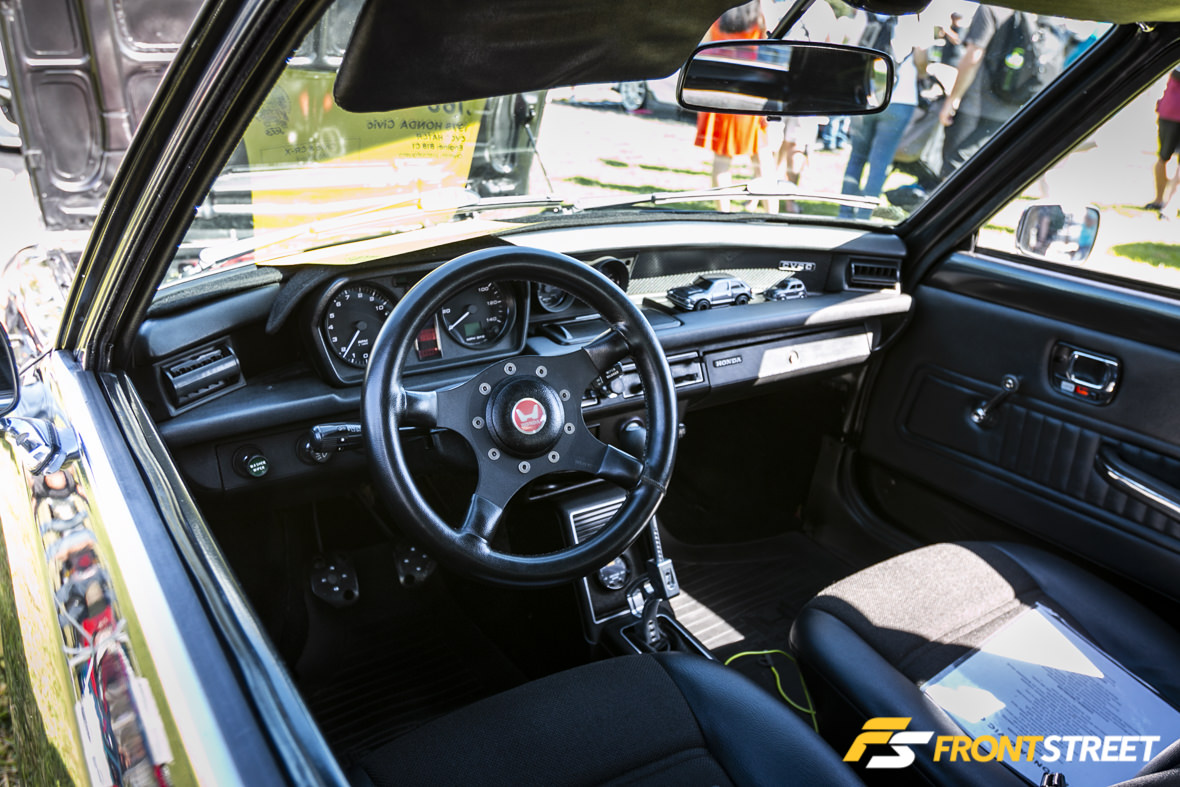 Inside the cabin were more Mugen parts. A set of the company’s bucket seats and FG360 steering wheel were installed, along with a NEXT Miracle X Bar and an abundance of JDM accessories.